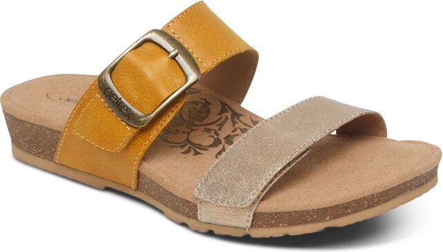Update your warm weather outfits with the Daisy by AETREX! The arch support and memory foam cushioning will make these leather sandals your go-to pair for the season. These comfy slides also include a met bar for pressure relief under the metatarsal area, a blown rubber outsole for lightweight durability, and adjustable straps for the perfect fit!