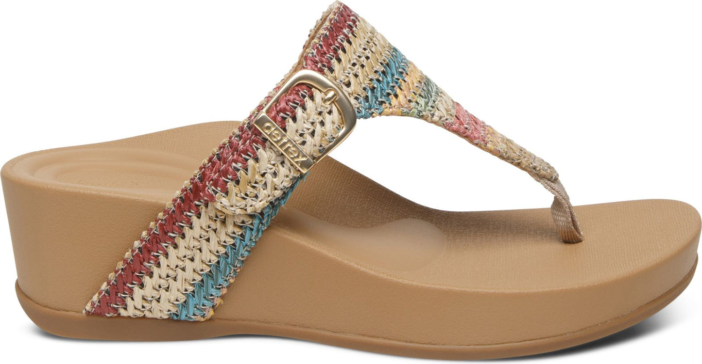 Elevated your look with the Kate. This supportive thong wedge features Aetrex Signature Arch Support and lightweight UltraSky™ EVA foam footbed, all sitting on a water-friendly construction. Wear the Kate to the beach, lake, or pool to pair perfectly with your warm weather looks!