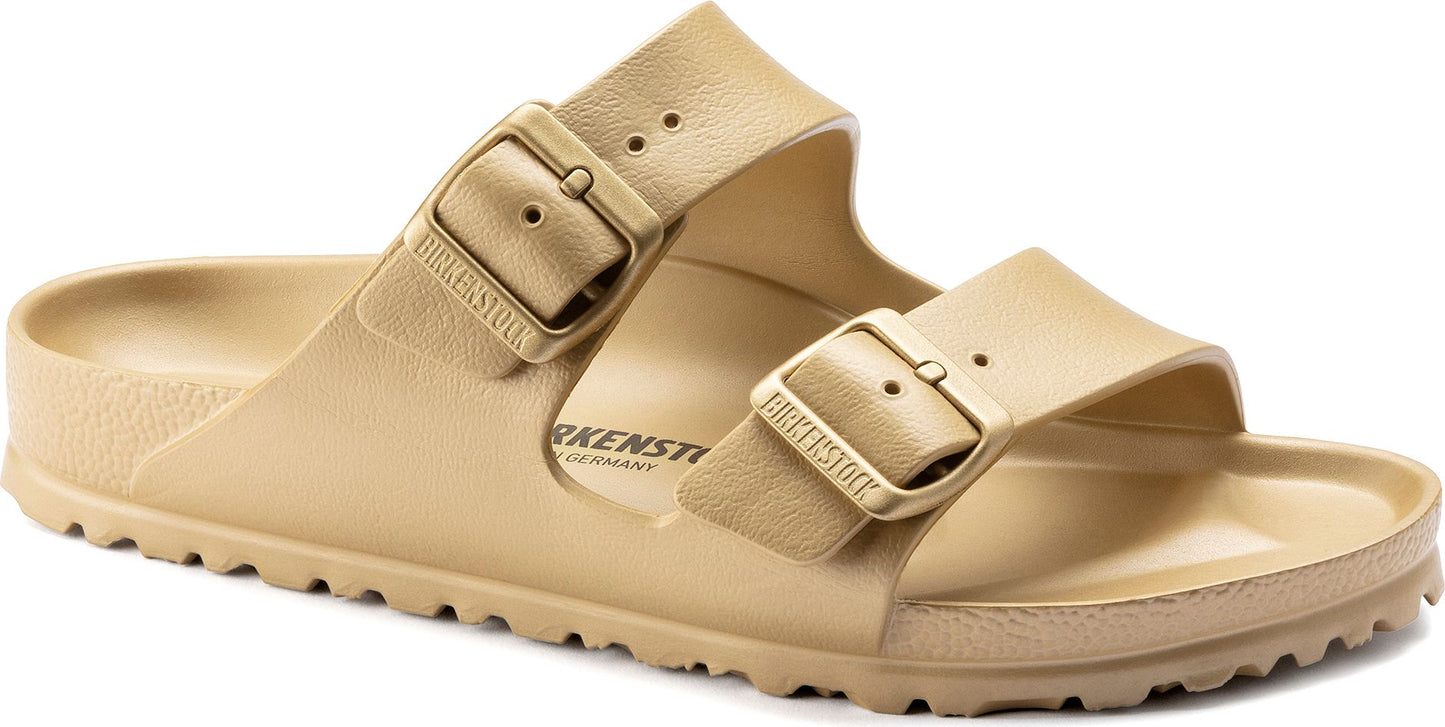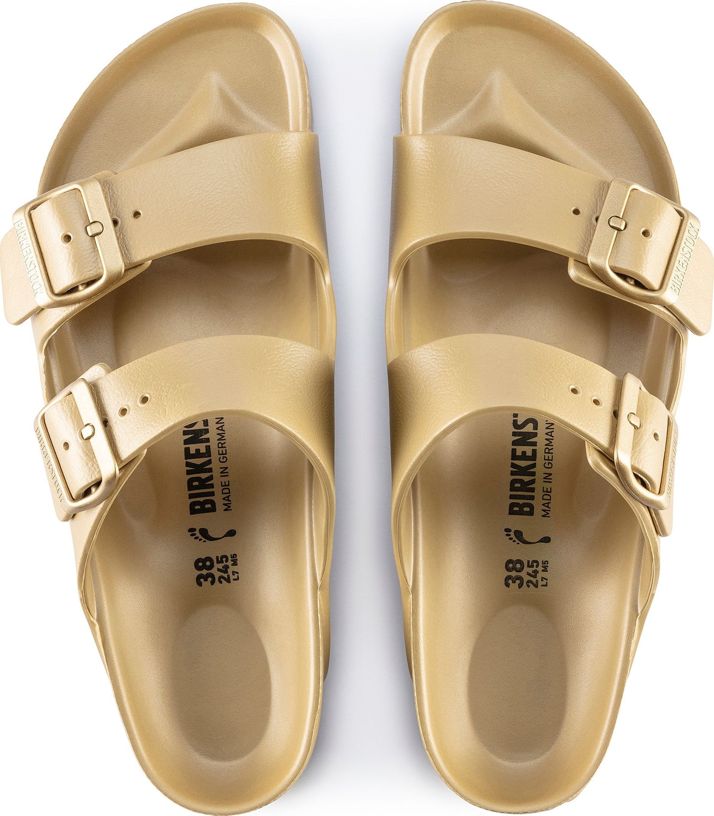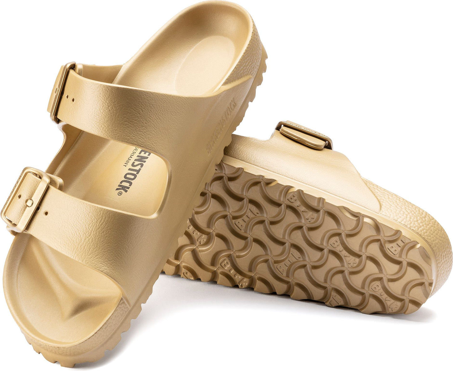 The legendary two-strap design from BIRKENSTOCK - the Arizona. Modeled on the cork original, this sandal is made from ultra lightweight and highly flexible EVA. These sandals are shock absorbing, waterproof, and skin-friendly. Wear them at the beach, in the garden, or around the gym and after workouts. It's the perfect addition to your classic BIRKENSTOCK sandals.