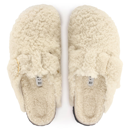 Plush it up. Oh-so-fluffy teddy shearling and an oversized statement buckle transforms the Boston clog into the season's be-seen style. Teddy shearling even pads the footbed lining for the ultimate, cozy finish. It's all grounded in the comfort of our contoured footbed, designed to shape to you with wear.