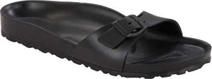The wonderfully stylish Madrid by BIRKENSTOCK in water friendly EVA. This famous footbed in flexible, durable, and lightweight EVA offers more toe room and raised toe bar to encourage the natural gripping motion, exercising your legs and improving circulation while deep heel cup and contoured footbed ensure even weight distribution.