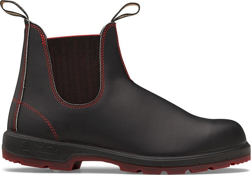 Unabashedly bold. Unbelievably comfortable. Welcome Classics Series #2342, anchored on red soles with two tasty sides of red herringbone elastic gussets. Long-wearing, weatherproof Blundstone leather outside, butter-soft leather inside. All-day dry comfort right out of the box, underlined in red.