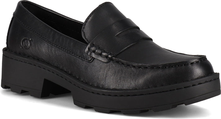 Born lugged sole penny loafer, crafted with signature Born comfort in a multitude of colors. Born have designed the Carrera in a rustic palette of nature-inspired hues in beautiful leathers and suedes.