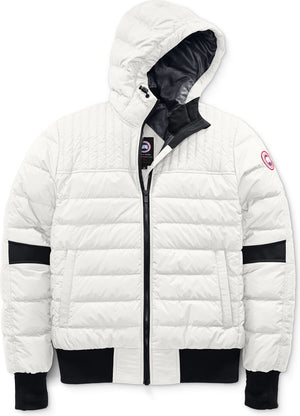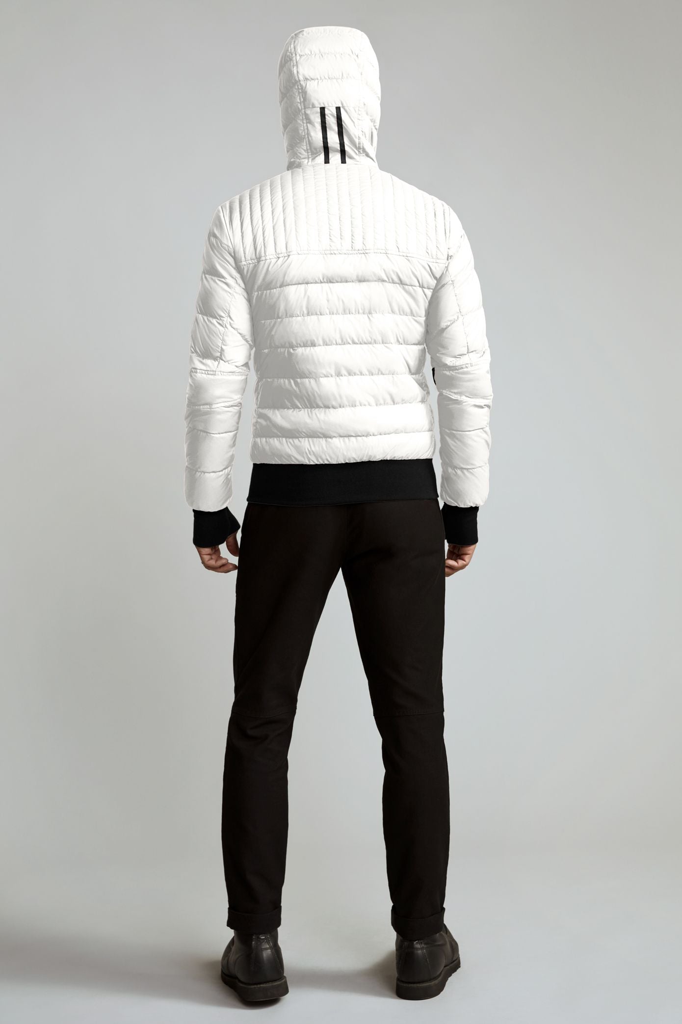 - Adjustable down-filled hood adds warmth and element protection. Signature double-stripe reflective details at the back add visibility in low light