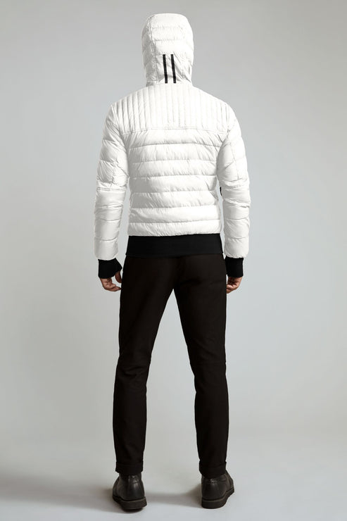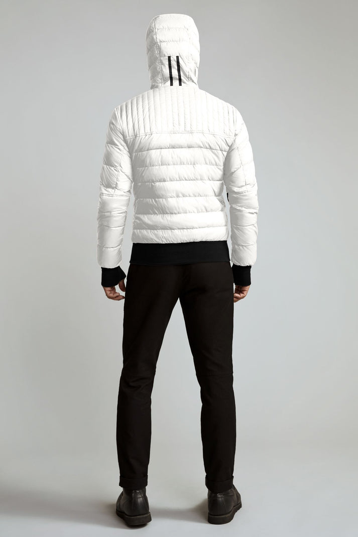 A versatile and cross-functional slim-fit hoody that packs into an interior pocket for easy travel. Crafted from our Feather-Light Ripstop fabric to keep the elements out. A down-filled hood adds essential warmth and comfortable rib-knit cuffs and hem lock in warmth.