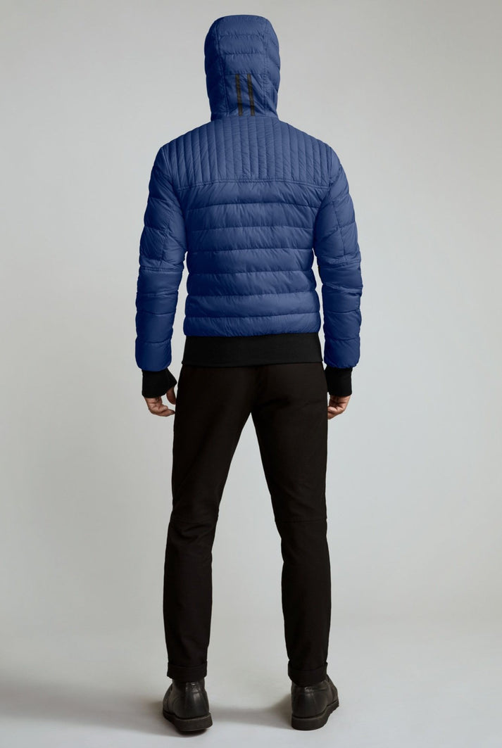 A versatile and cross-functional slim-fit hoody that packs into an interior pocket for easy travel. Crafted from our Feather-Light Ripstop fabric to keep the elements out. A down-filled hood adds essential warmth and comfortable rib-knit cuffs and hem lock in warmth.