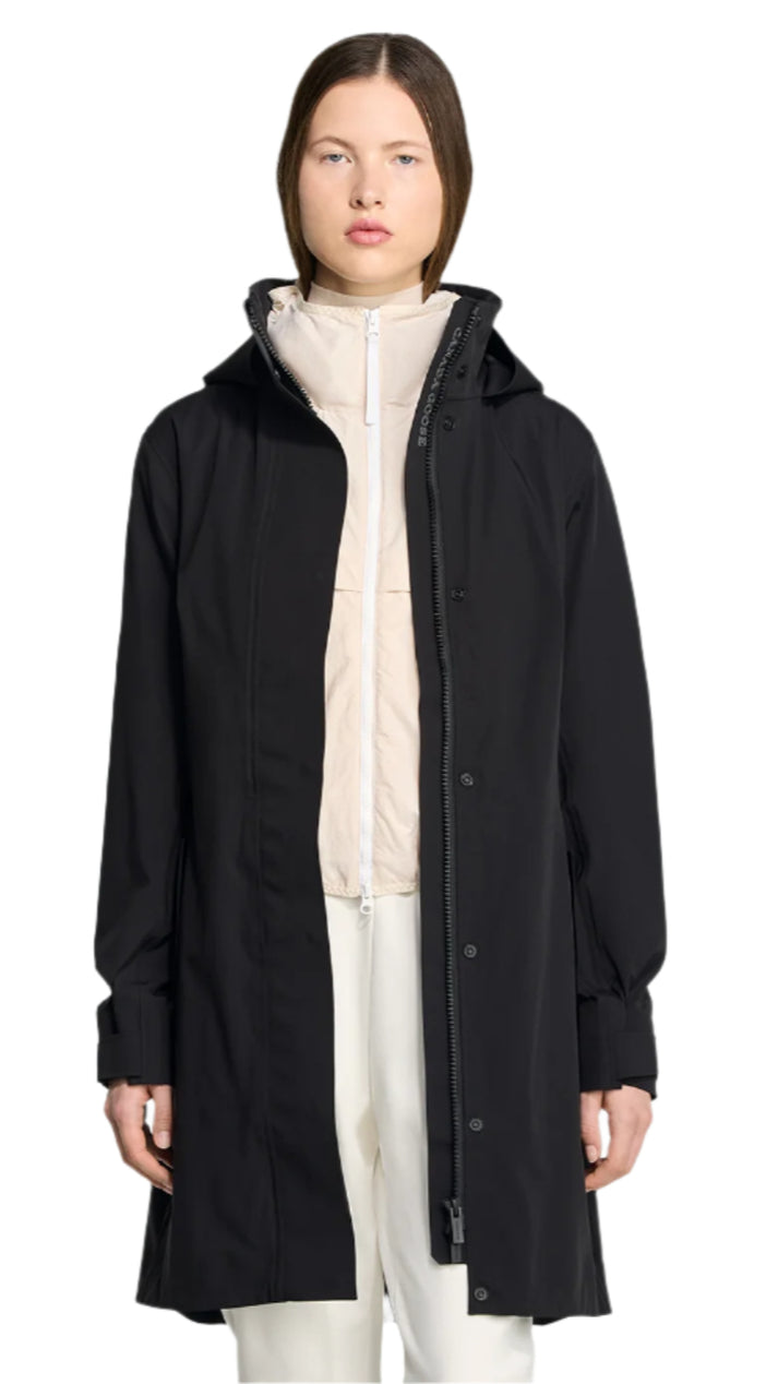 The Cardero Rain Jacket offers a contoured silhouette with a waist-cinching back drawcord. Embrace unpredictable weather in this 100% waterproof style. This style falls at mid-thigh and is crafted from a new flexible three-layer fabric for breathable comfort and performance.