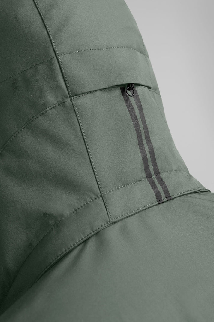 - Removable hood has single adjustment point at back that cinches two ways at once. Extended brim construction stays out of your line of sight. Signature double-stripe reflective details at the brim and back add visibility in low light. When hood is removed, the exposed zipper folds into the collar