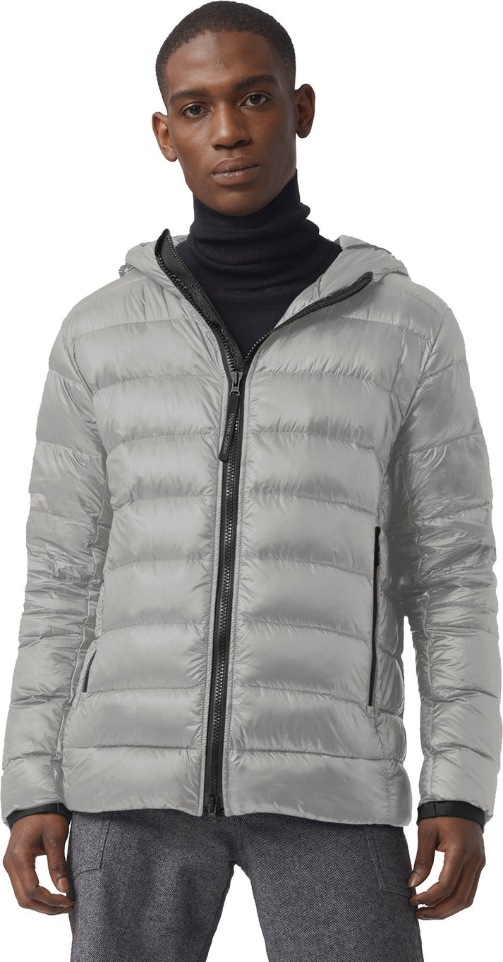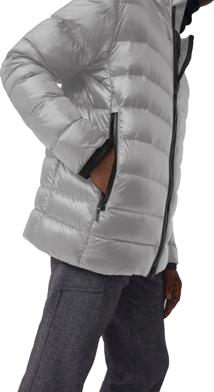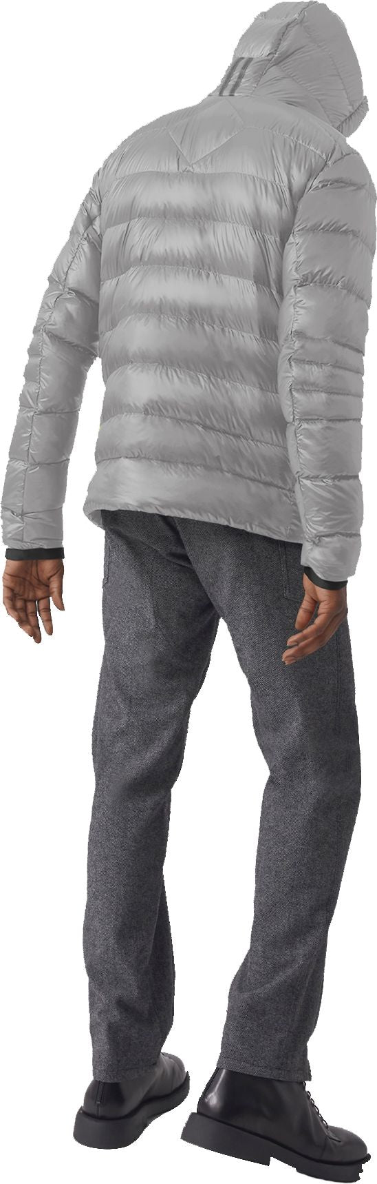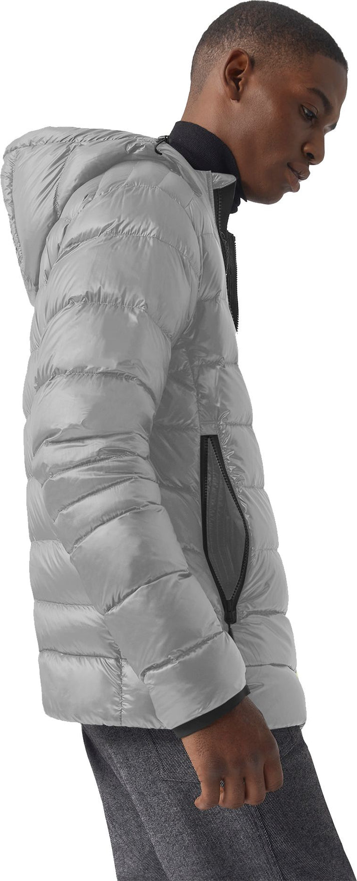 - Down-filled adjustable hood with cordlock adds warmth and element protection. Signature double-stripe black reflective details at the back add visibility in low light