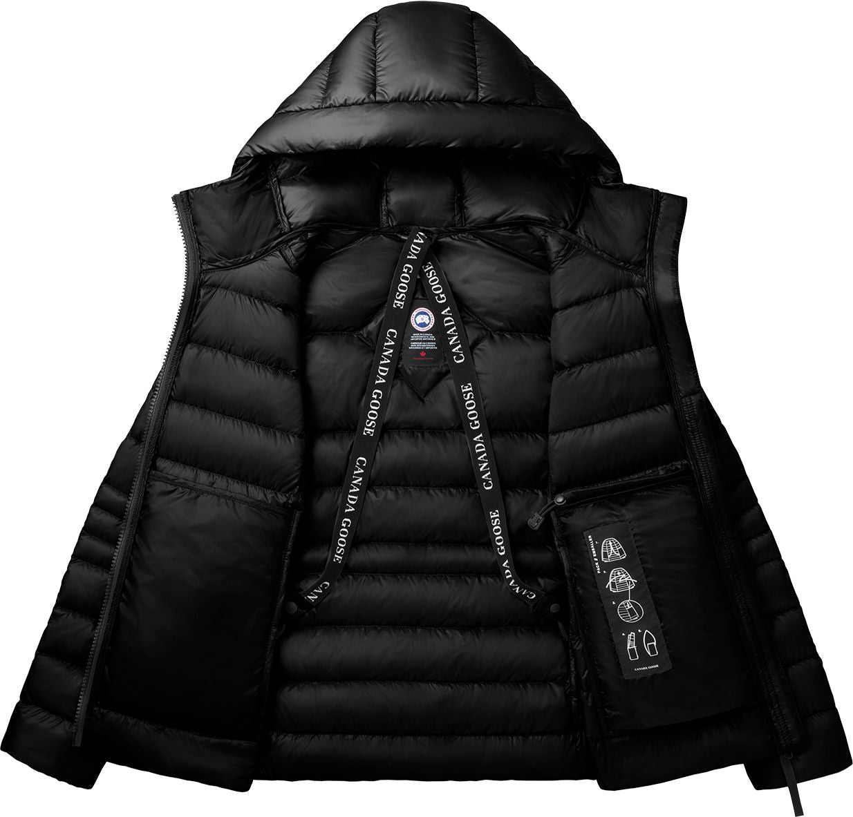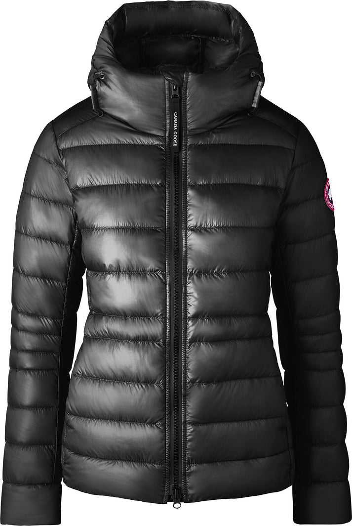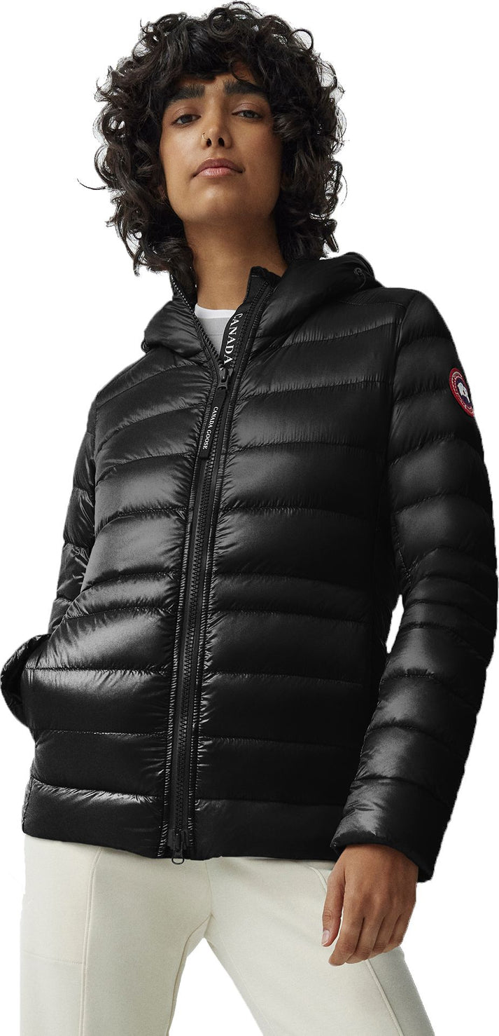 Made with an ultra-lightweight fabric with ripstop construction, the Cypress Hoody is designed to withstand high winds, light rain and snow. It has an adjustable hood, signature double-stripe reflective on the back of the hood and is packable into an interior pocket for easy travel. Canada Goose's signature disc completes this style.
