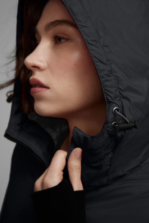 - Adjustable down-filled hood adds warmth and element protection. Signature double-strip reflective details at the back add visibility in low light