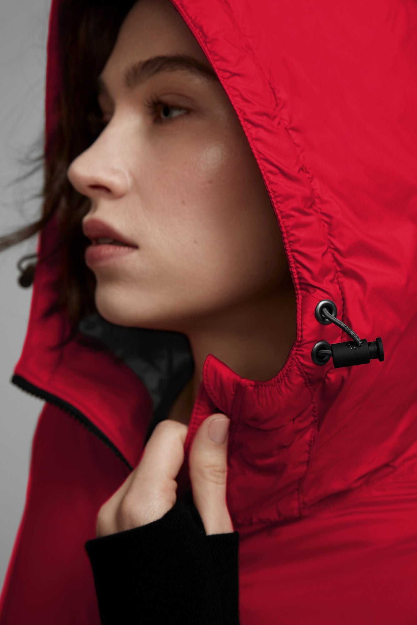 • Adjustable down-filled hood adds warmth and element protection. Signature double-strip reflective details at the back add visibility in low light