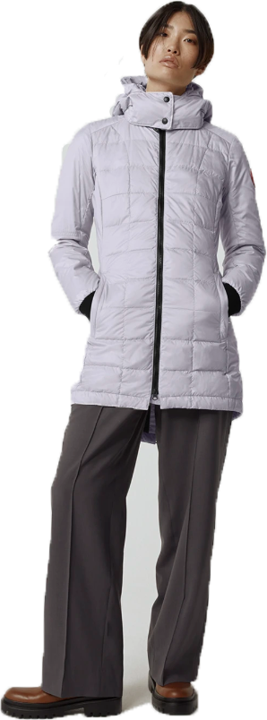 This lightweight, slim fit jacket is designed with CANADA GOOSE's feather-light fabric for essential warmth and protection from the elements. A removable down-filled hood and fishtail hem add coverage and warmth. Pack the whole jacket into an interior pocket for easy travel.