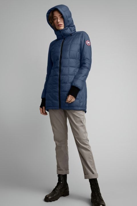 This lightweight, slim fit jacket is designed with CANADA GOOSE's feather-light fabric for essential warmth and protection from the elements. A removable down-filled hood and fishtail hem add coverage and warmth. Pack the whole jacket into an interior pocket for easy travel.