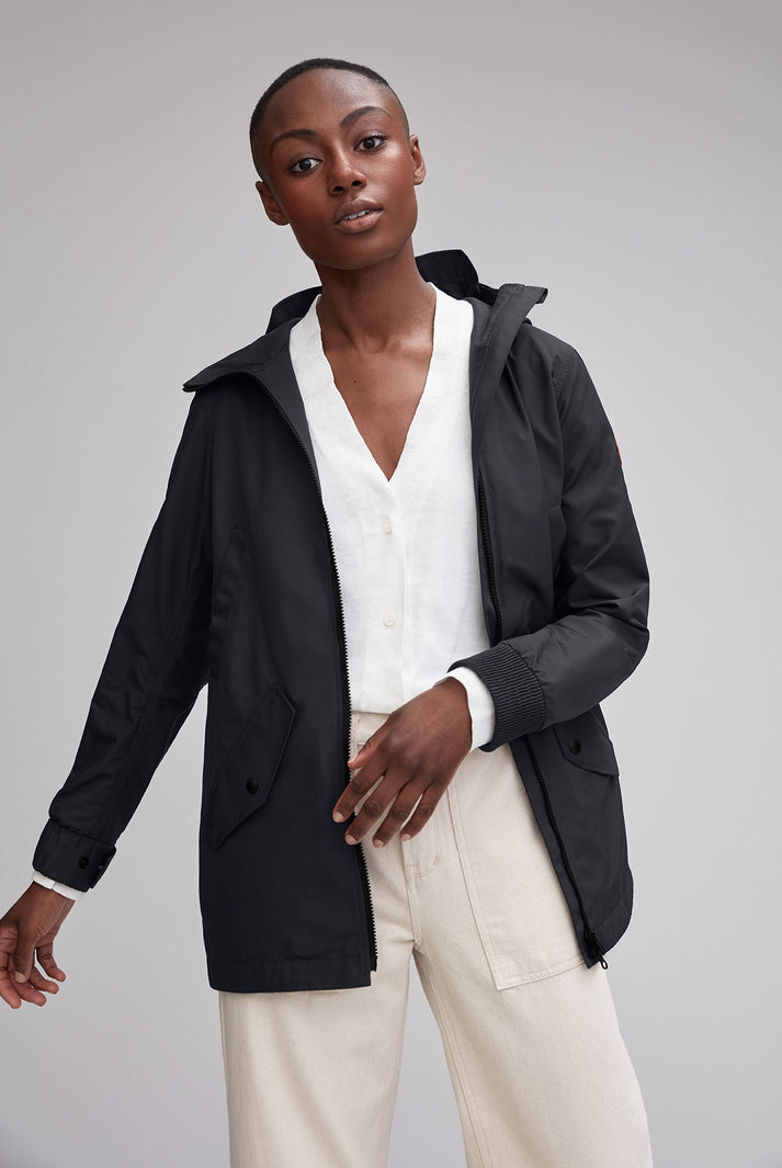 Stay comfortable through winds and light rain in the Ellscott Jacket by CANADA GOOSE, crafted with windproof and water-resistant fabric. The hood has an extended brim to protect from the elements without blocking your vision, and mesh venting underneath the back panel keeps you from overheating.