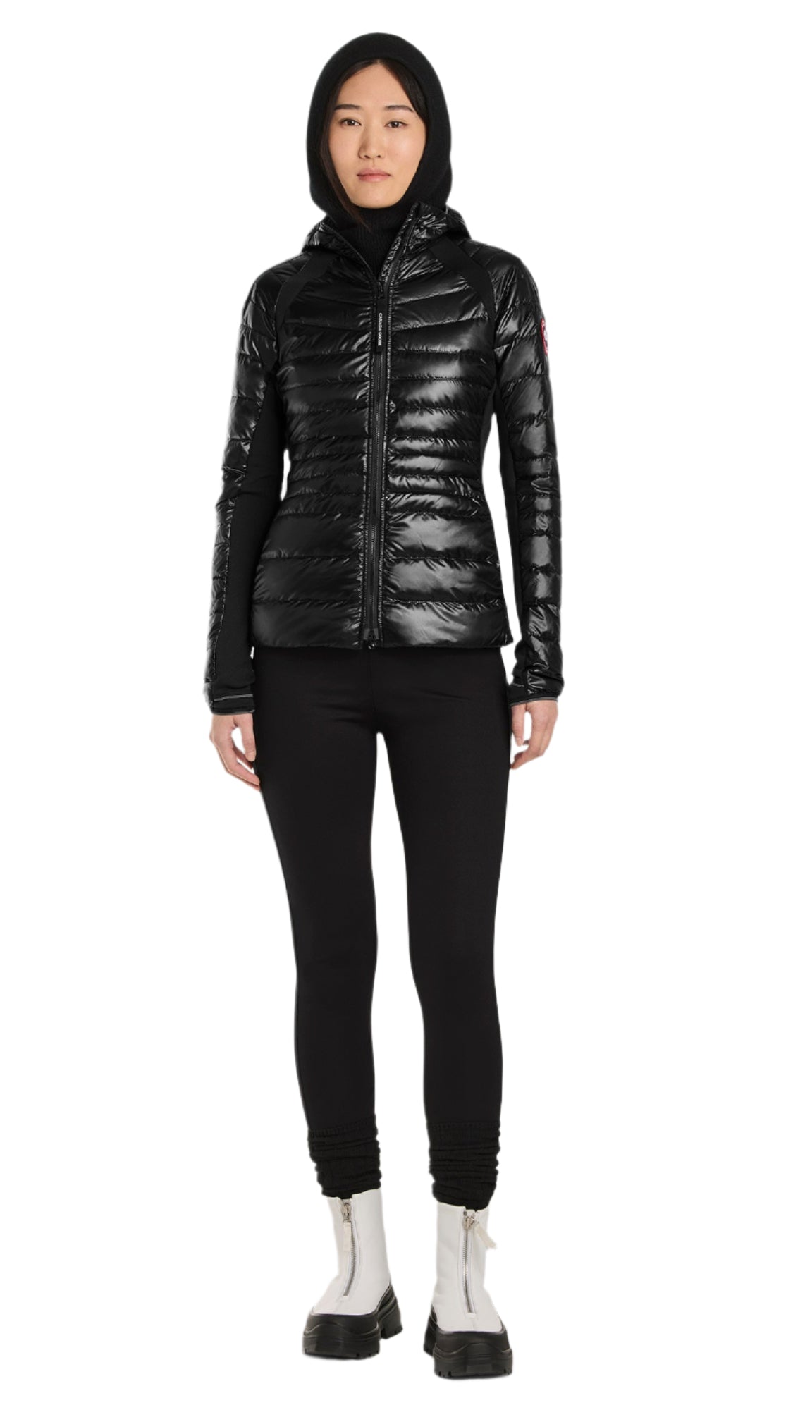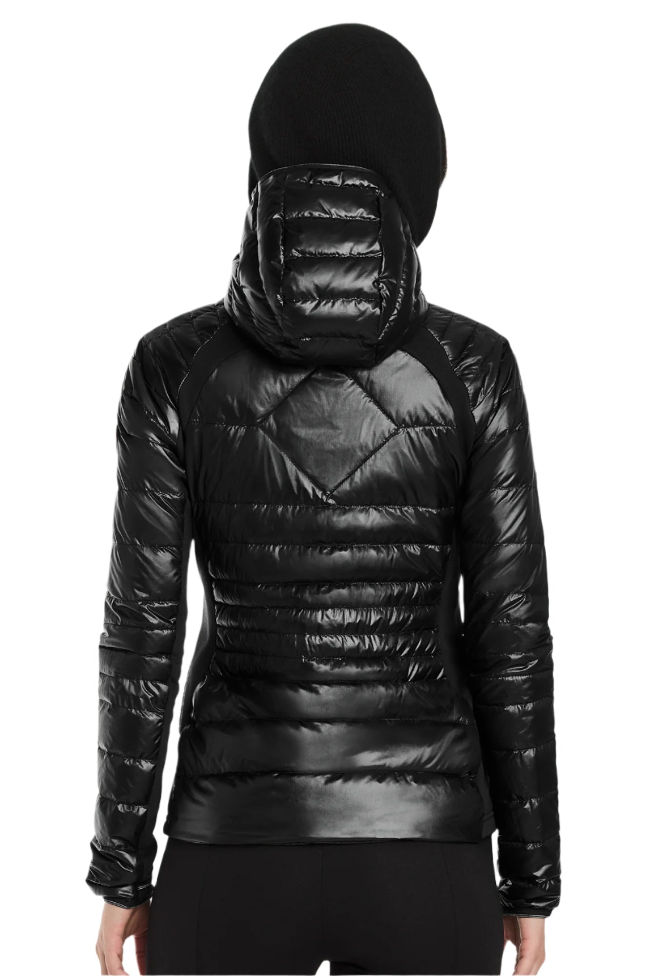 −Down-filled hood with stretch binding