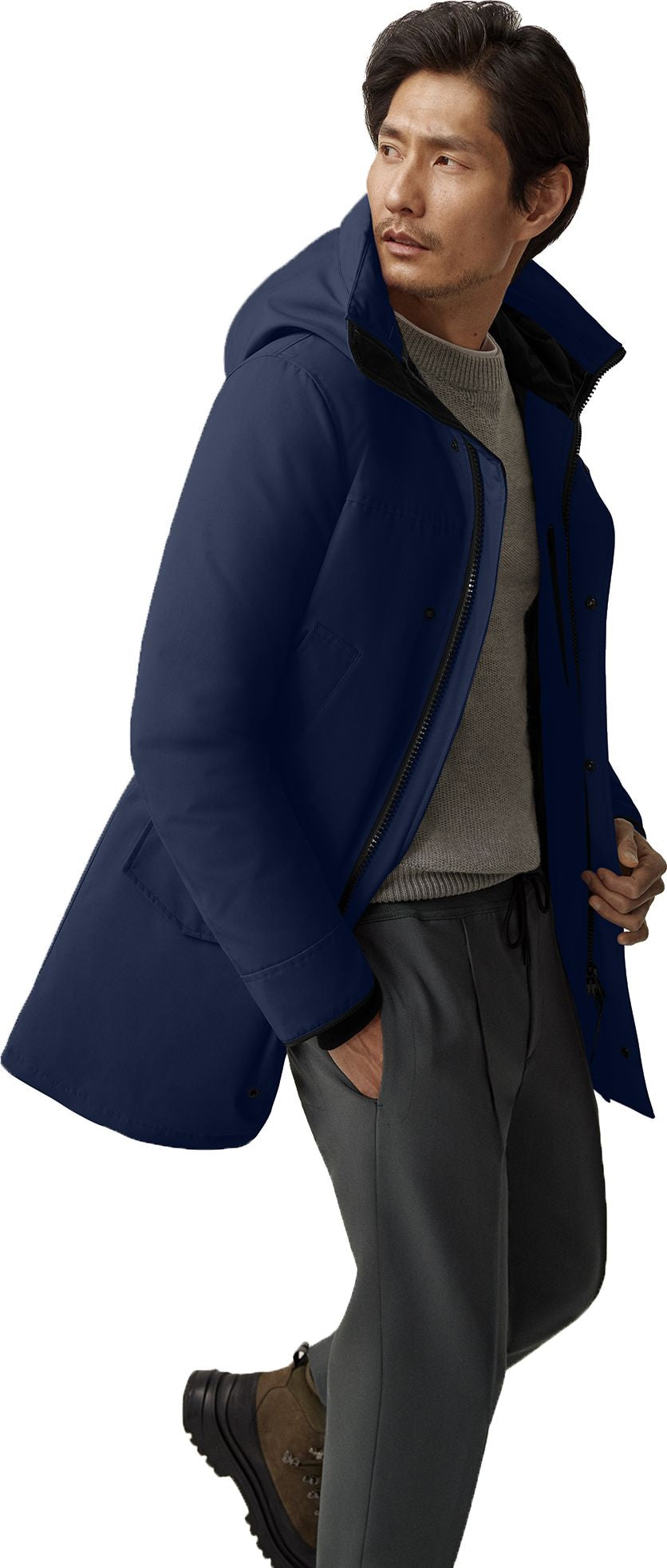 The Langford parka by Canada Goose gets an update with streamlined hood adjustment, additional drop-in pockets, and added backpack straps. This stylish urban piece is similar to the Chateau parka but is slightly longer for greater leg protection. With a storm flap over the centre front zipper and two interior pockets, Langford offers clean lines and a modern look - all in an uncompromisingly protective parka. Customize your parka and extend the coverage of your hood with a variety of our interchangeable Hood Trim accessories.