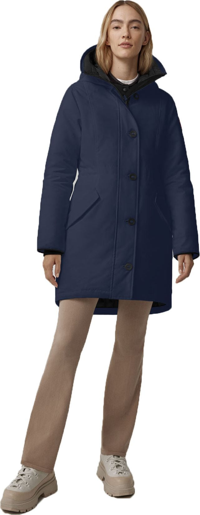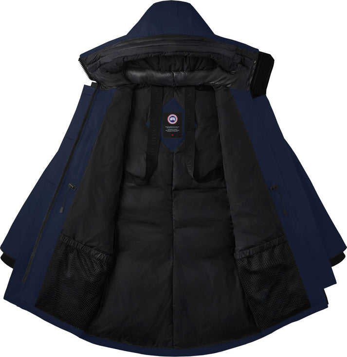 One of Canada Goose's most-loved styles, the Rossclair Parka, gets an update with streamlined hood details, elevated trims, and additional inside pockets. This mid-length parka is crafted from our durable Arctic Tech® fabric that’s designed to face harsh elements. Wear it sleek and straight or tighten the adjustable waist to create an A-line silhouette, which helps keep icy drafts out. A longer back hem offers superior protection from cold and wind. Customize your parka and extend the coverage of your hood with a variety of their interchangeable Hood Trim accessories.​