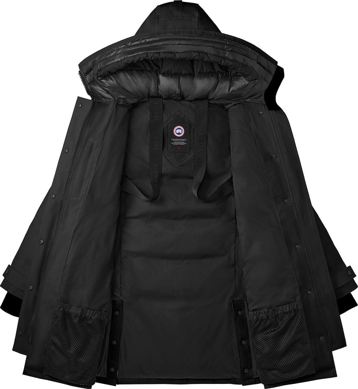 One of Canada Goose's most-loved styles, the Shelburne Parka, gets an update with streamlined hood details, elevated trims, and additional inside pockets. This long-thigh length Shelburne Parka is the perfect jacket for those frigid days where you require maximum protection. This TEI 3 jacket is sure to keep you warm without sacrificing style. Customize your parka and extend the coverage of your hood with a variety of their interchangeable Hood Trim accessories.
