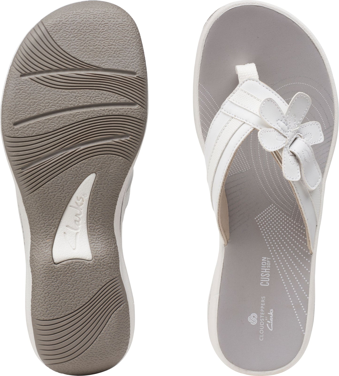 Pack light, step lighter. The Cloudsteppers™ Brinkley Flora flip-flop by CLARKS looks and feels as light and bright as summer should be. A cushioned EVA midsole and footbed support and protect the foot from shells and beach pebbles without adding any extra weight.