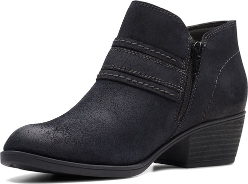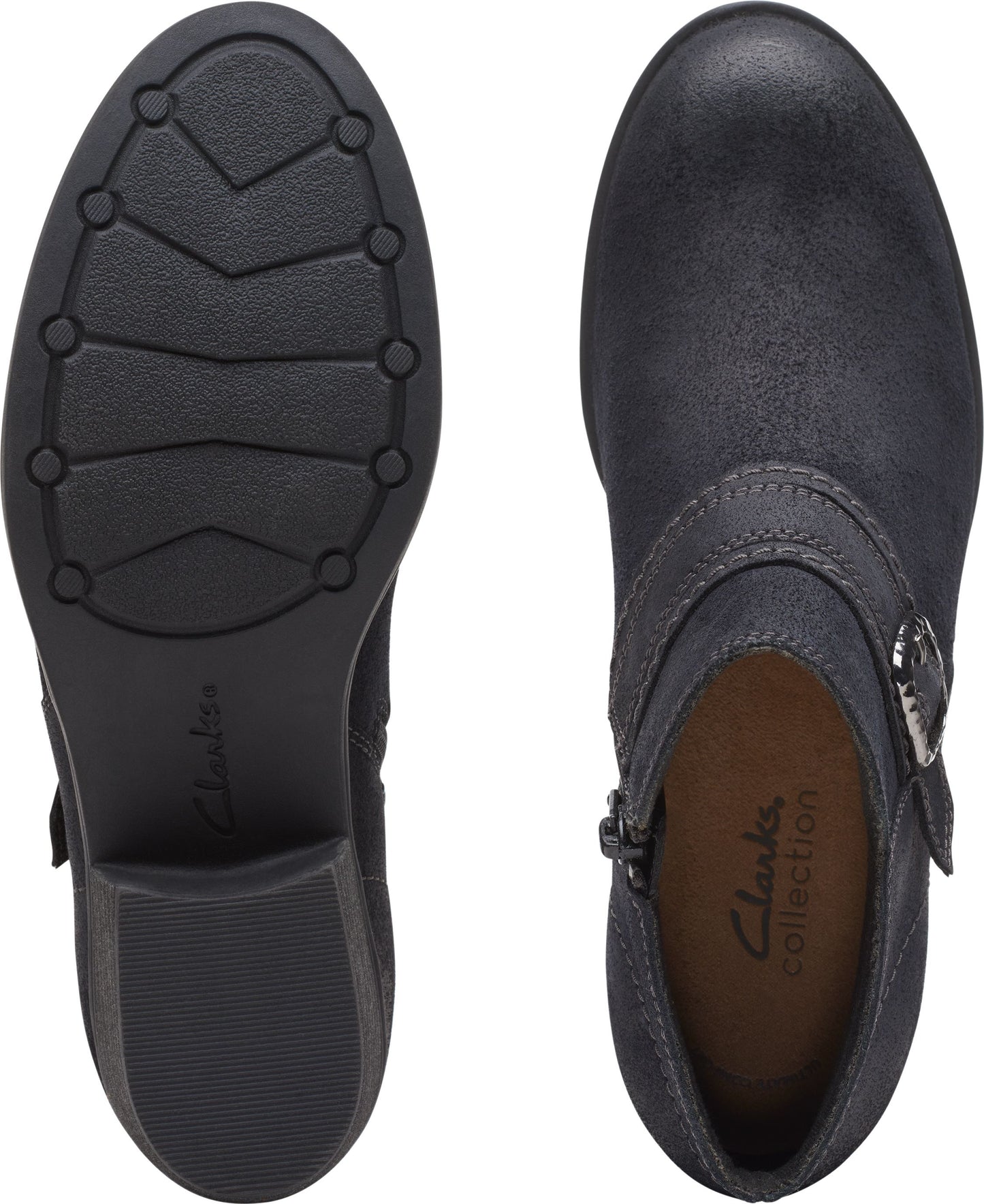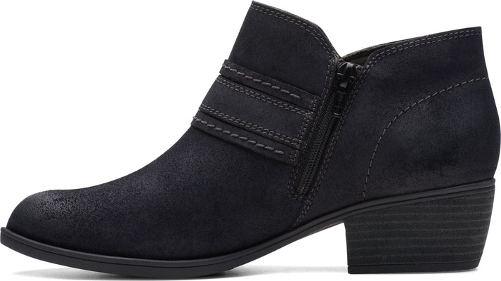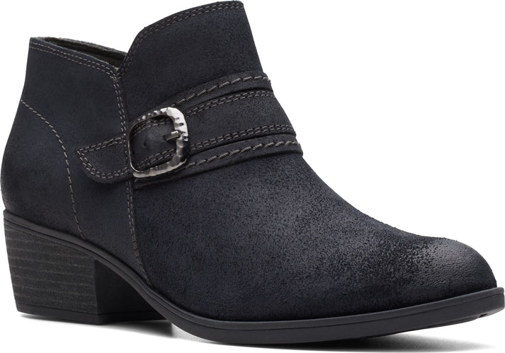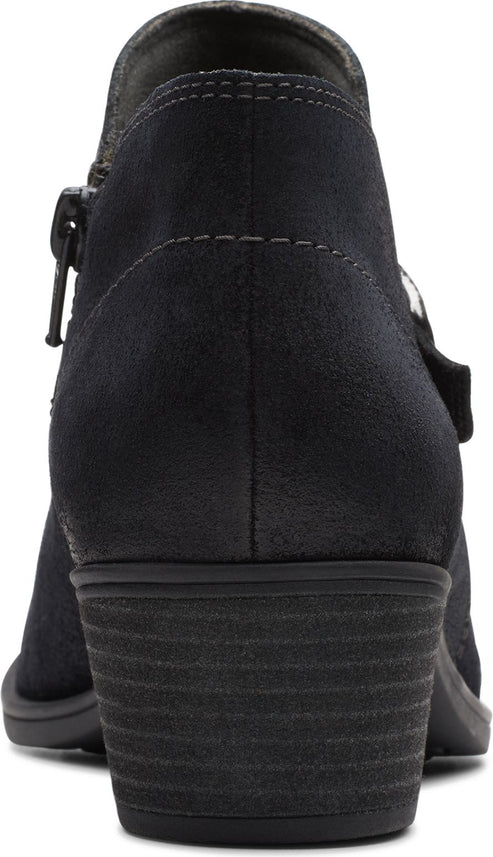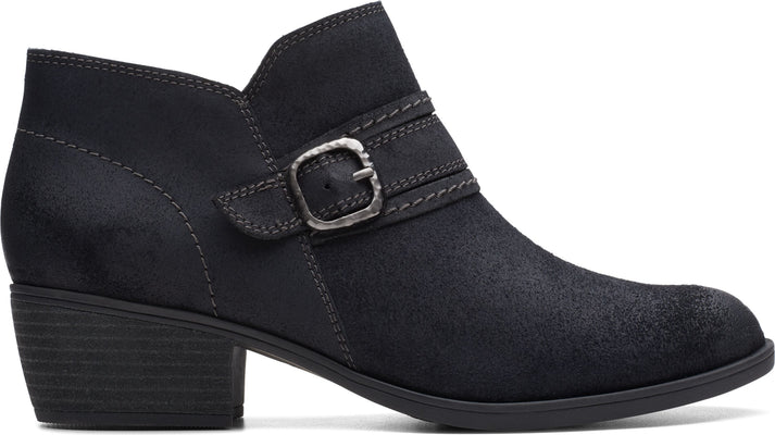 Casual suede in ultra-wearable black slip effortlessly into your wardrobe, and our Ultimate Comfort footbed and super-grippy sole support your every stride. A stacked-effect low heel and statement hardware update Clark's classic for AW23.
