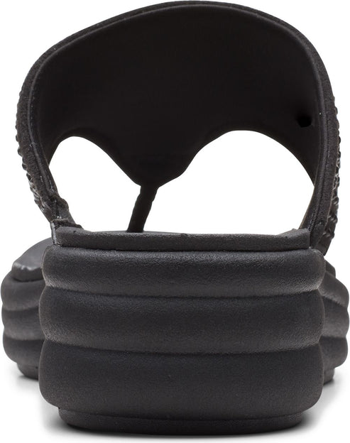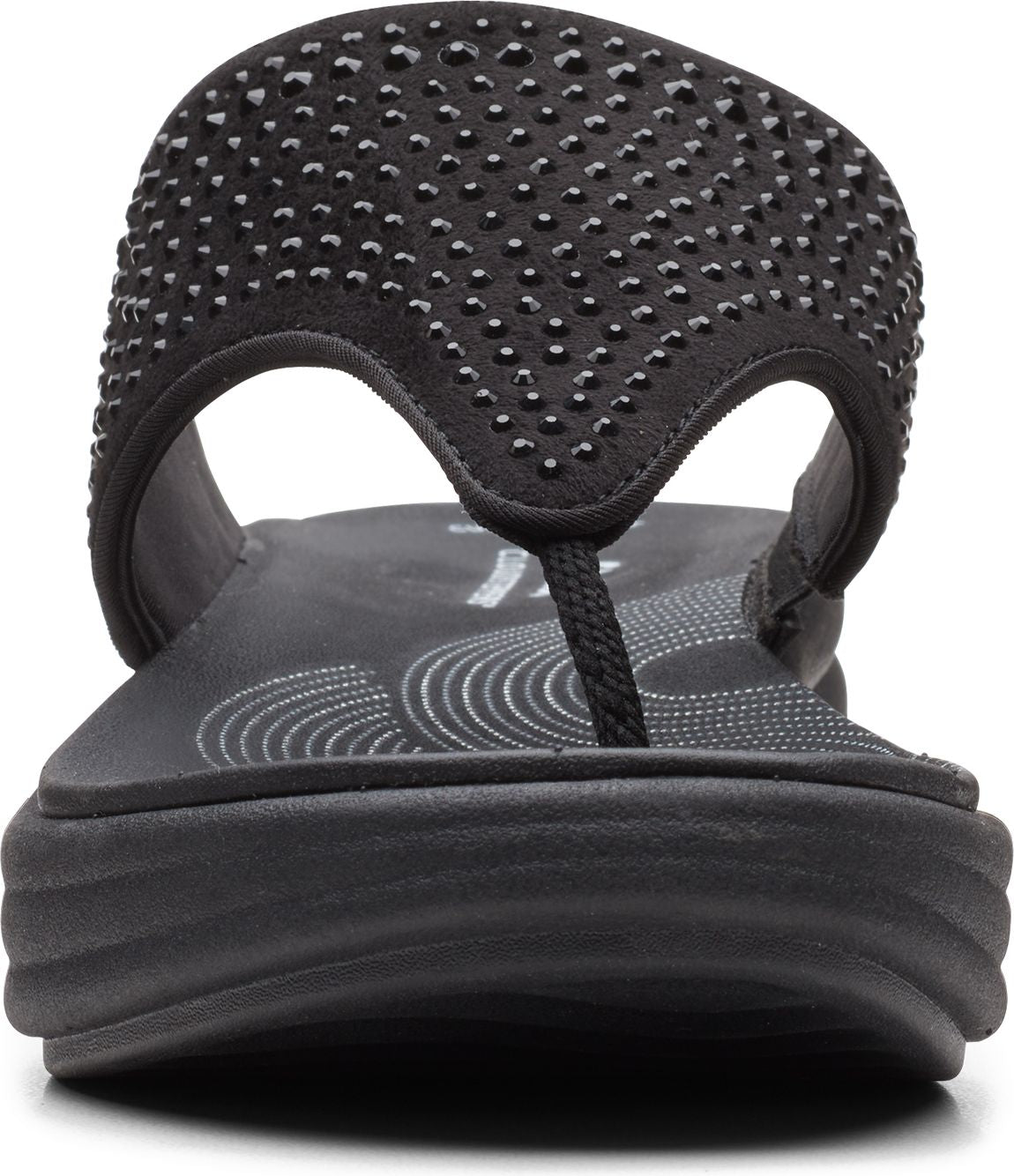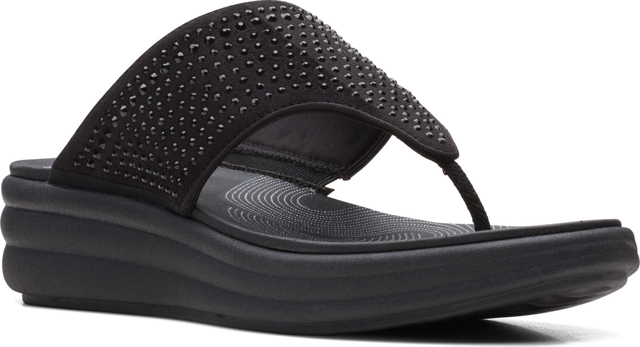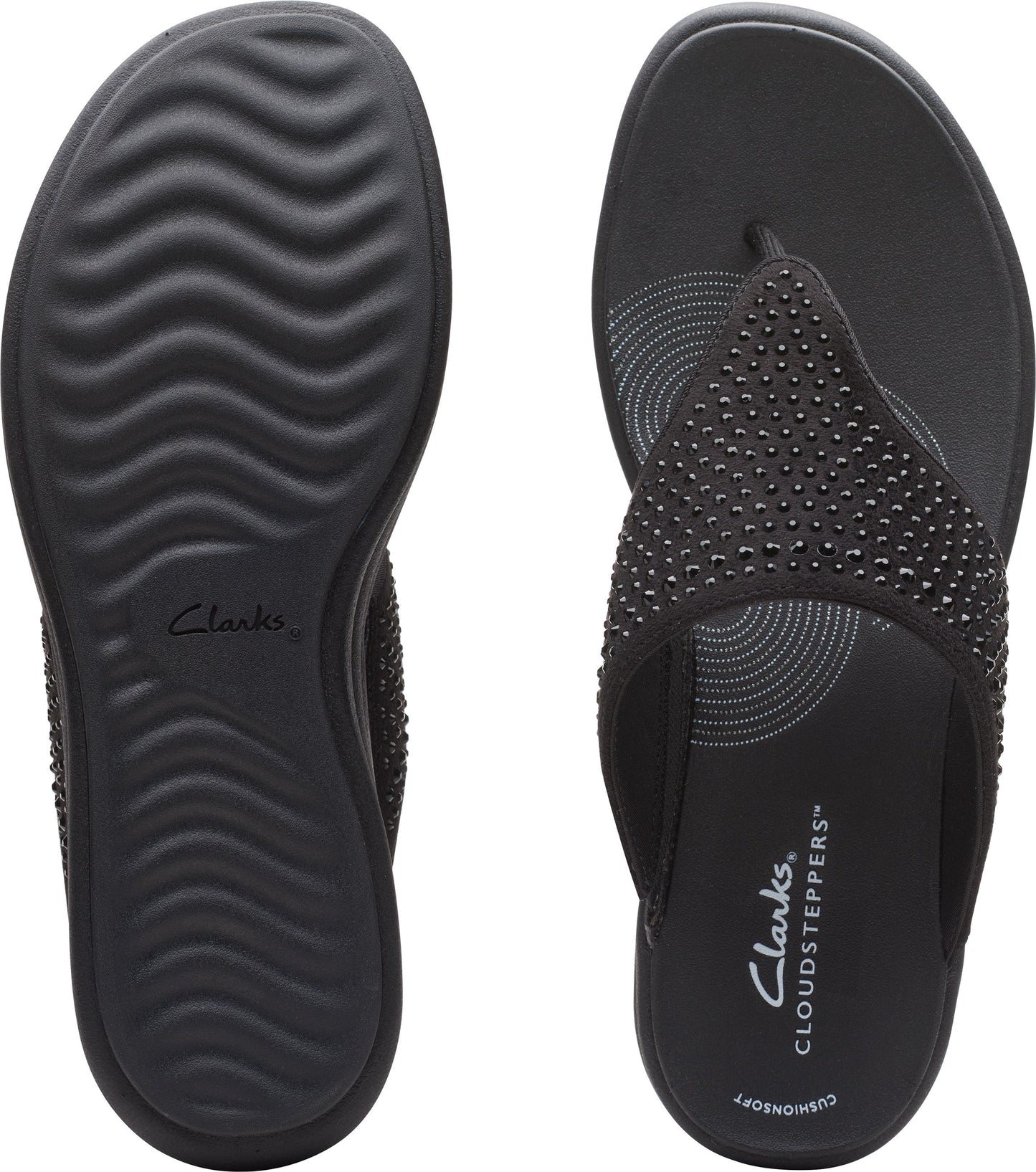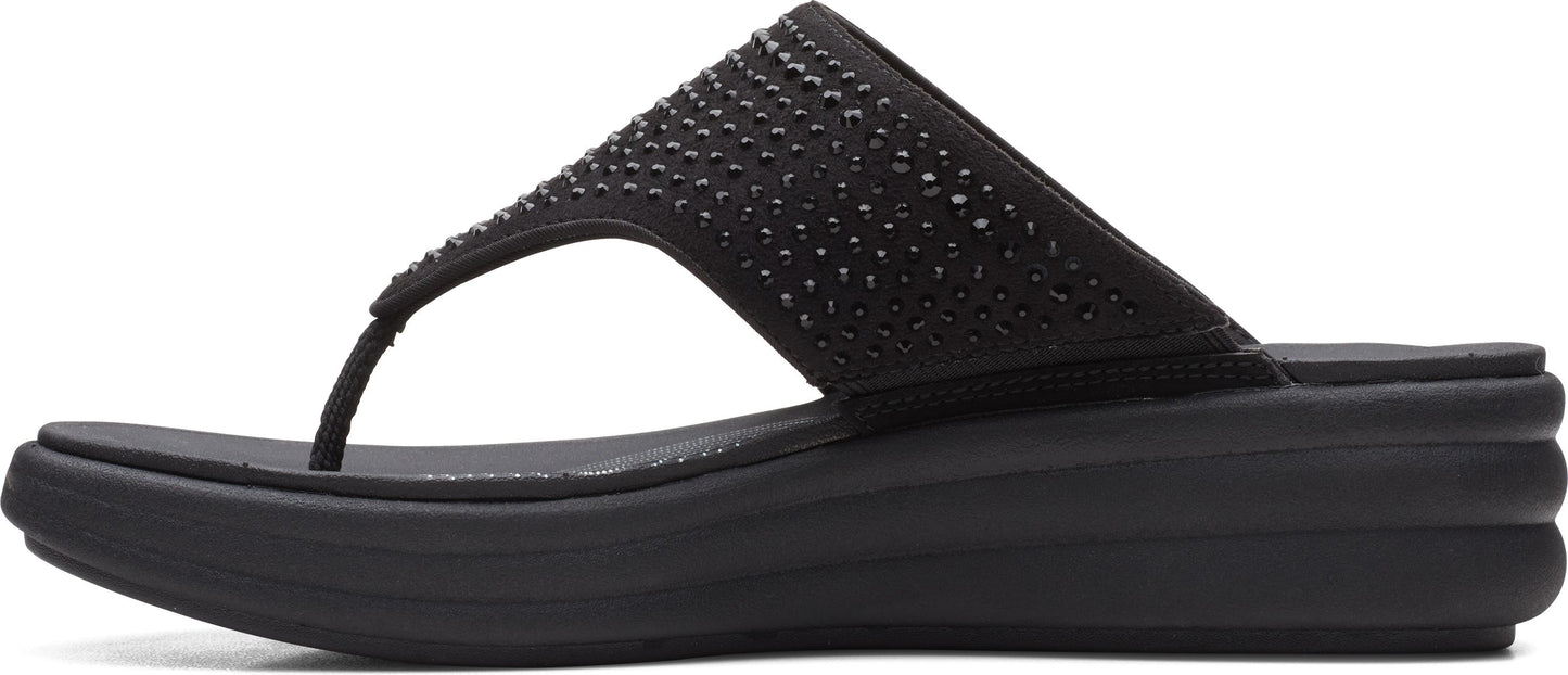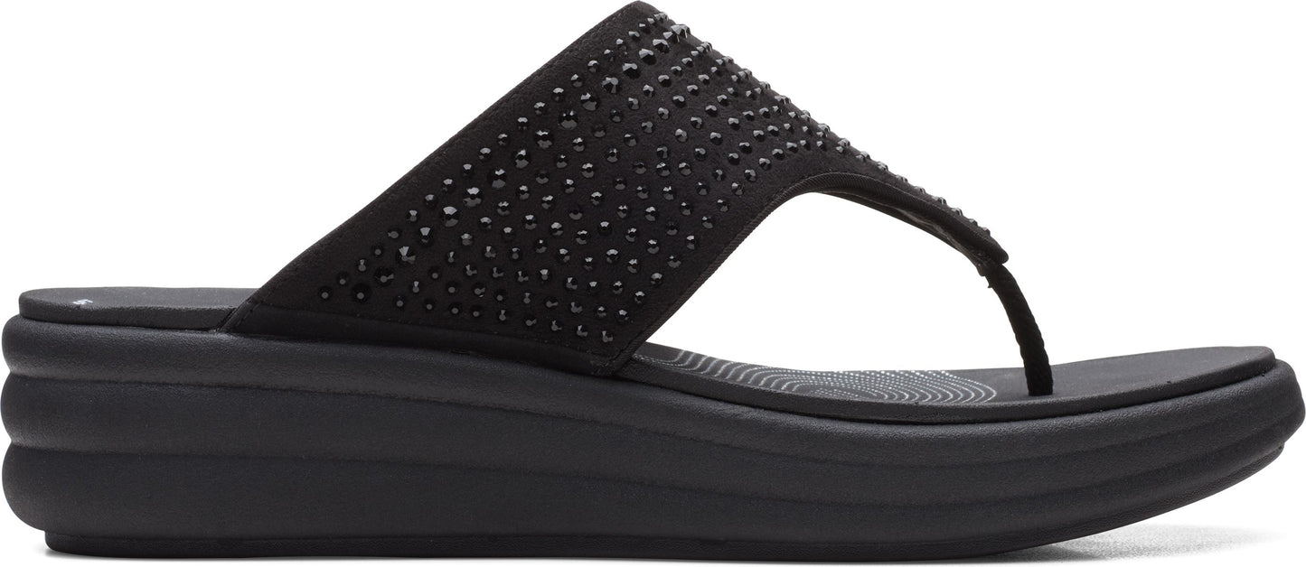 Get set to sparkle this summer in elevated toe-post sandal Drift Jaunt by CLARKS. Stacked with that all-essential comfort, the textile upper feels soft against skin, and a sumptuous cushioned footbed and lightweight EVA midsole make every step feel light as air. The jewel embellishment makes it a day-to-night dream.