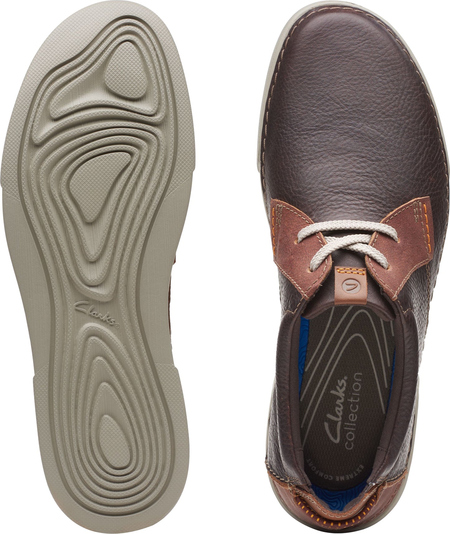 Comfy and casual, experience ultimate support in crafted, slim lace-up shoe Gereld Low by CLARKS. Designed to follow your foot shape for a natural fit, every step is fresh and feel-good thanks to an Extreme Comfort footbed enhanced with breathable OthoLite® technology. The responsibly sourced tan leather upper is side stitched for total flexibility, too.