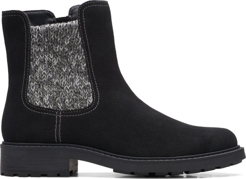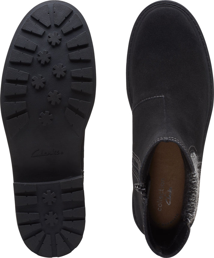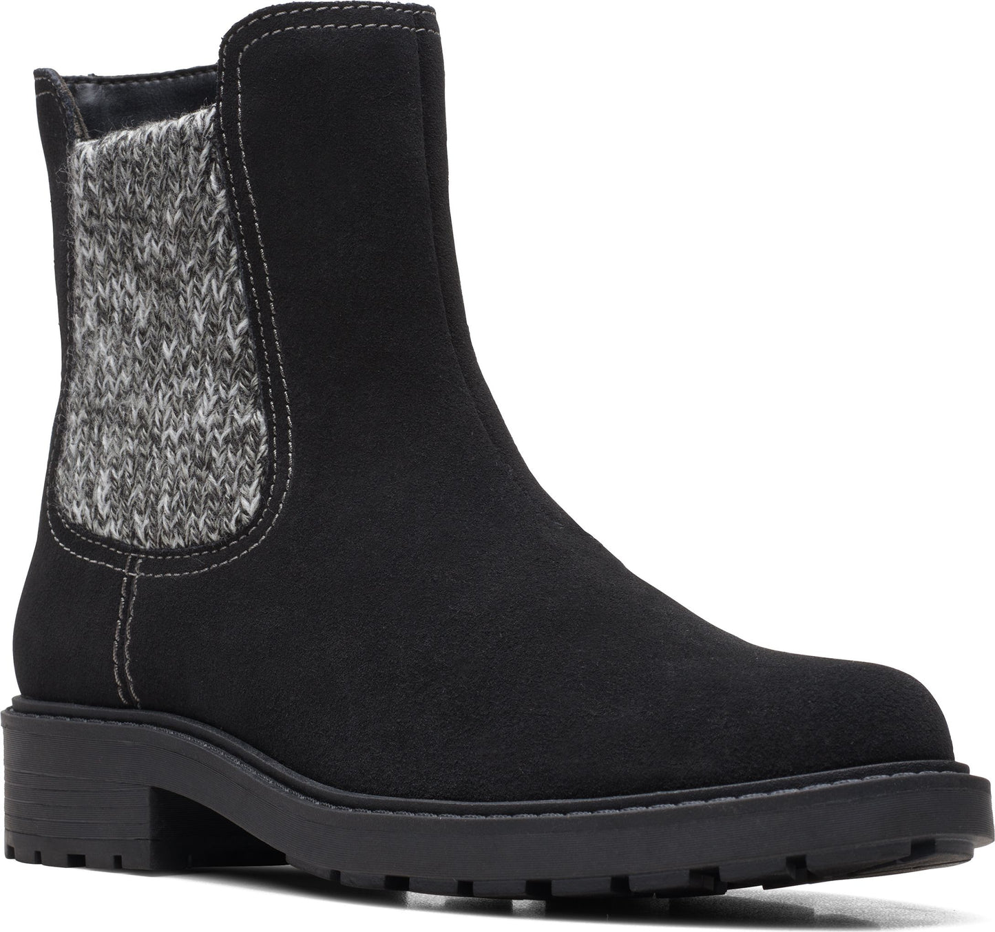 The Opal Sky Boot BY CLARKS. Step out in style with the Opal Sky boot. The beautifully crafted suede and knit upper features decorative stitching for added interest.