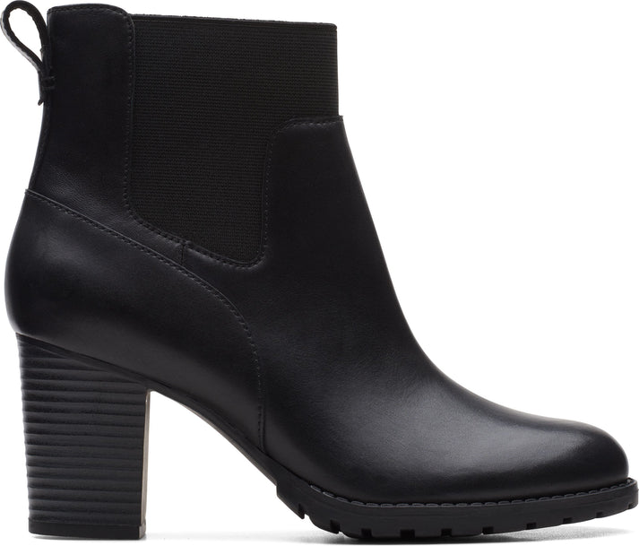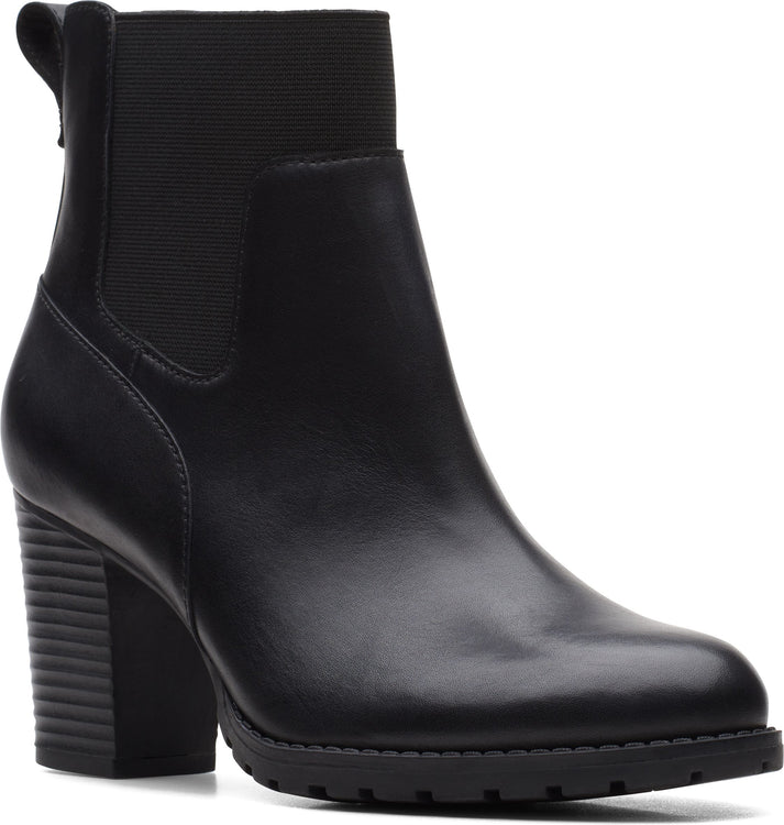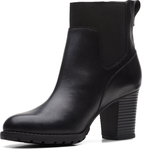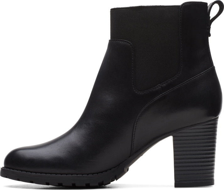 With verona ease by CLARKS you will enjoy feminine design and high-quality, black smooth leather. The medium-high block heel guarantees you a stable appearance, and gives you an expressive gait. The shaft area is stretchy, and adapts to your foot individually.