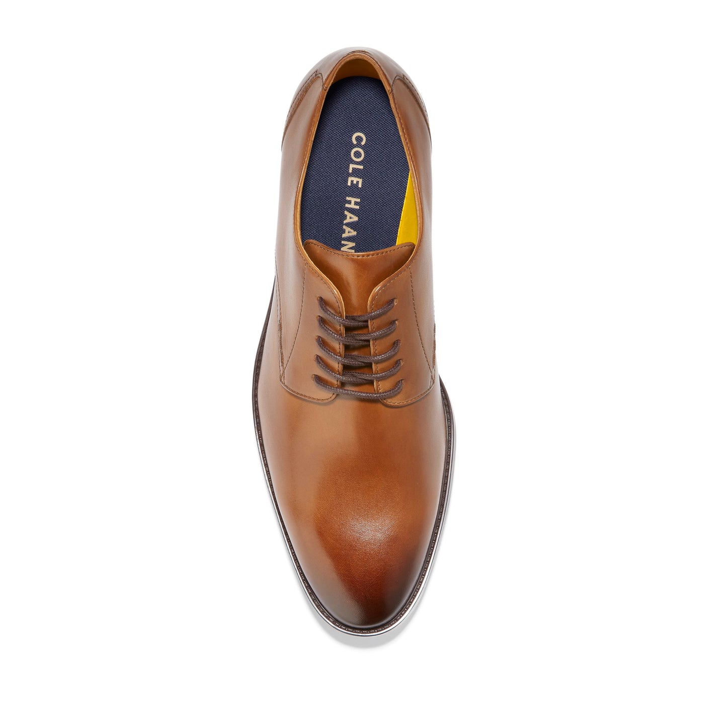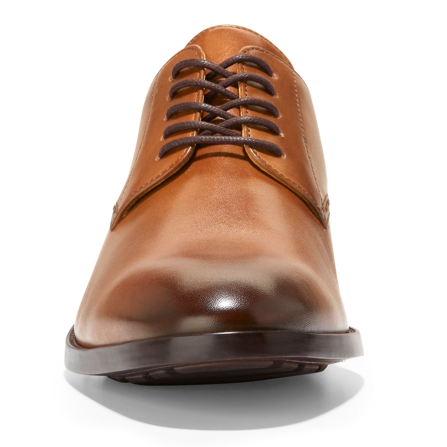 Brown leather lace-up dress shoe.