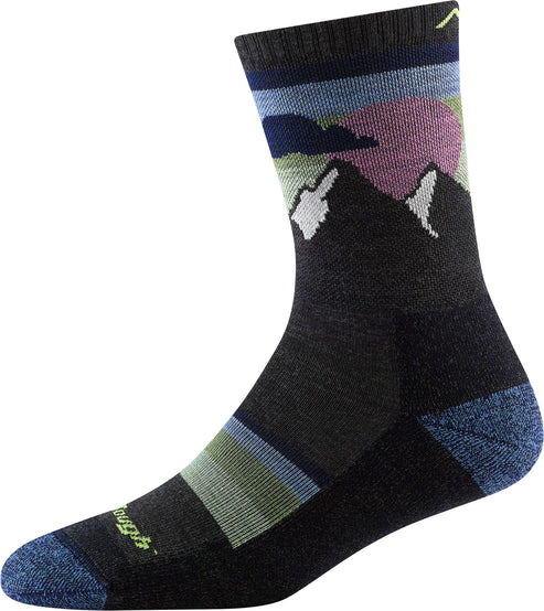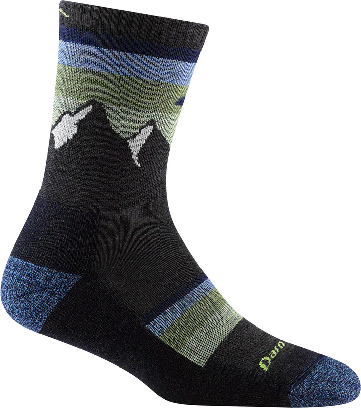 A lightweight hiking sock by DARN TOUGH, perfect for summer hikes into the fall. The smooth, low-profile leg is knit in a signature Micro Crew height for a more contemporary style you'll want to wear often. Cushion under the foot adds comfort on the trail and a little coziness in the cabin. A great fitting sock for a low hiking boot or trail shoe. Named for a section of The Long Trail - Vermont's own thru-hike - about halfway through. And made not too far away from there.