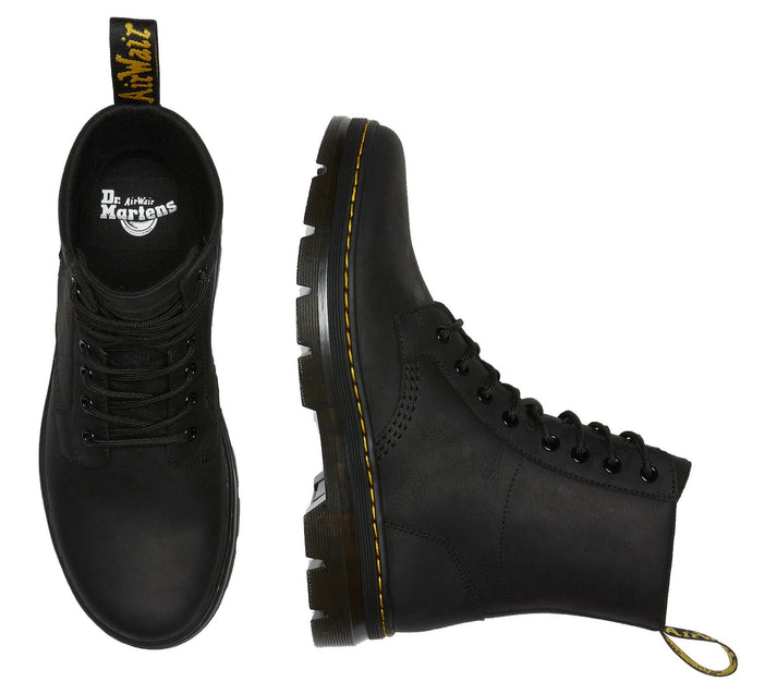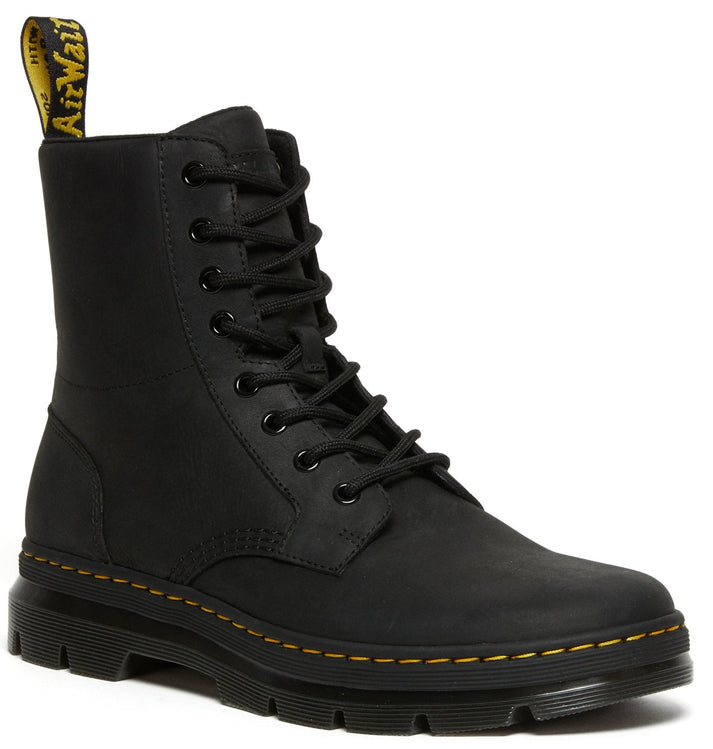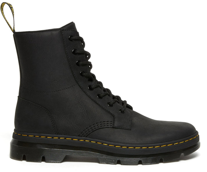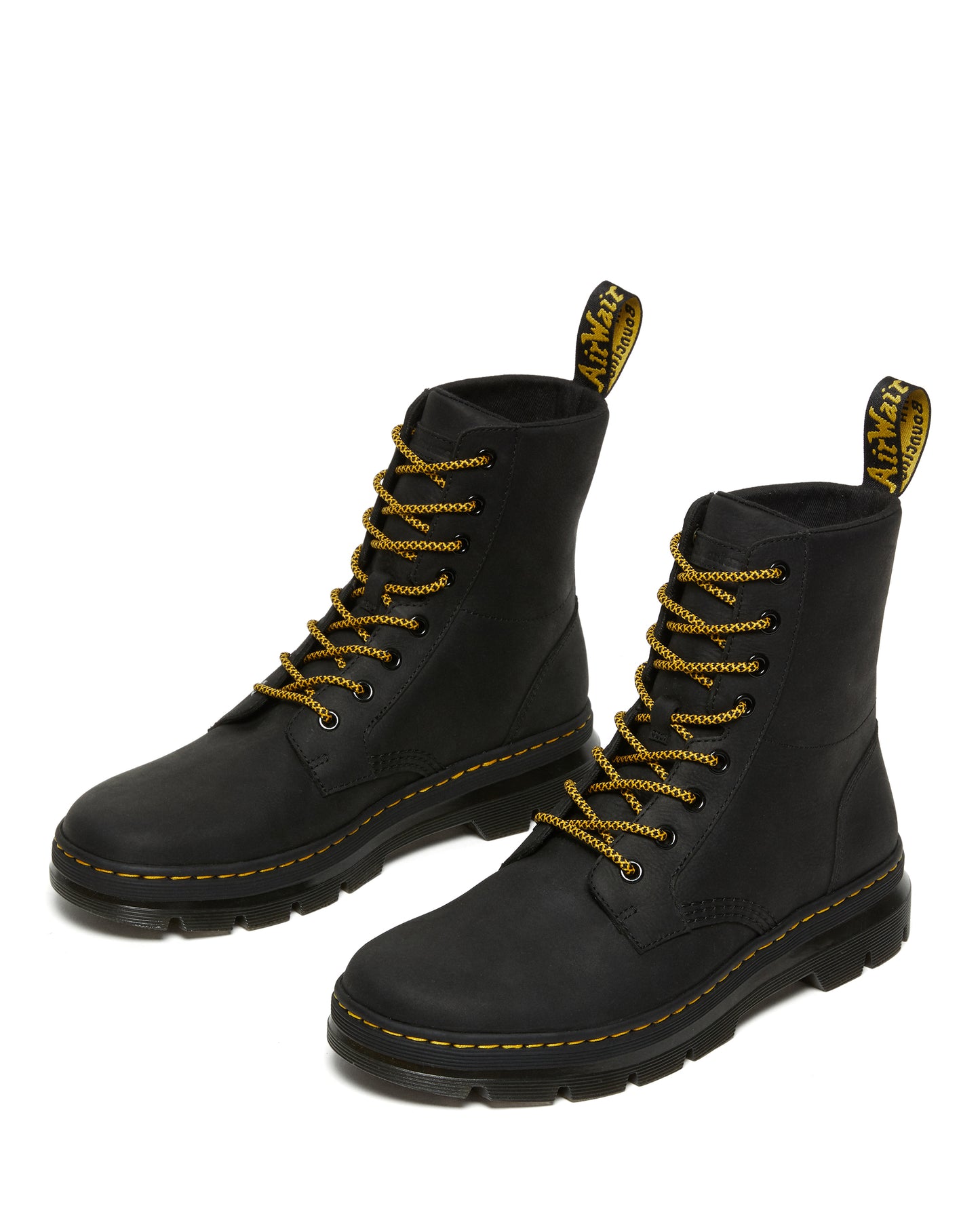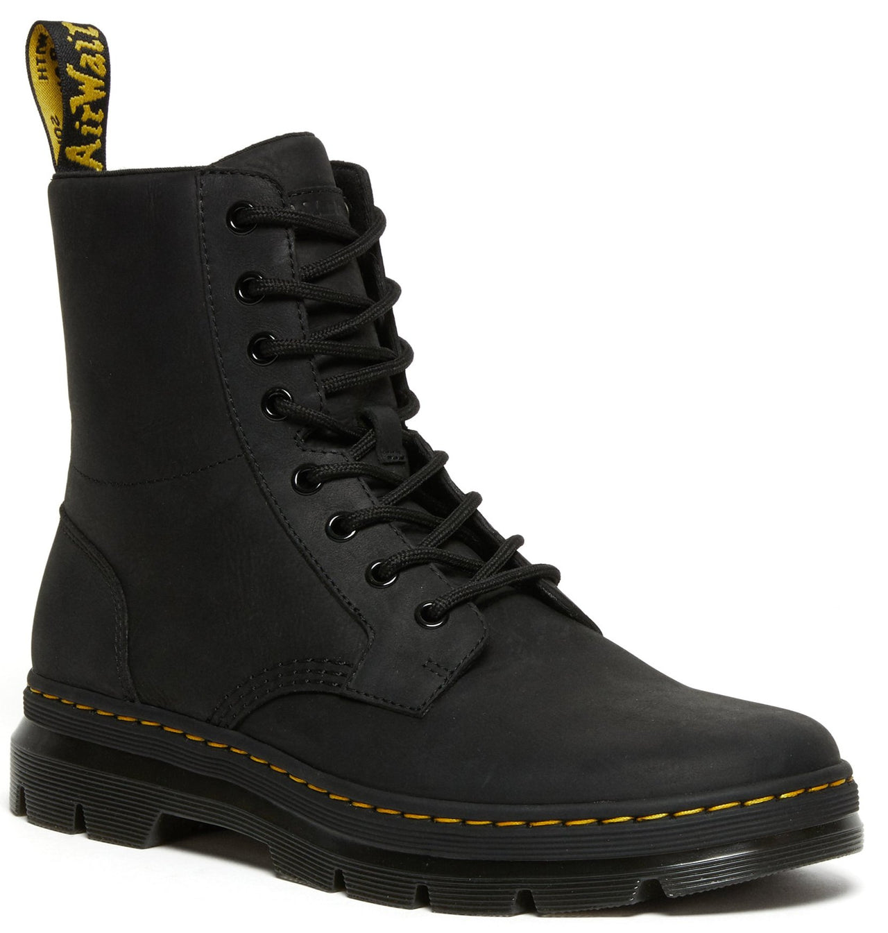 Make your mark. These Combs boots come in heel-to-toe monochrome for all-season versatility. Built from premium Milled Nubuck leather, the boots stay true to Dr Martens Original 8-eye silhouette, with muted DM's markings topped off by a scripted AirWair heel loop.