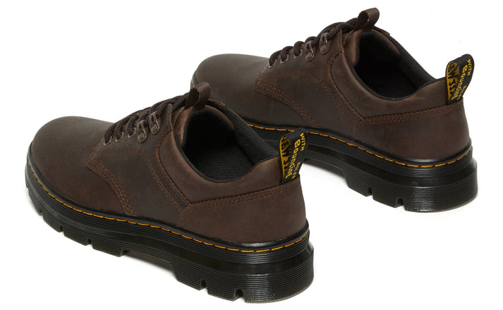 Built for the everyday. Standing on an extra rugged luggy outsole, these boots are made from Wyoming, a rich leather with a subtle grain. Full of Docs DNA, they're fitted with hiker-style laces and finished with yellow stitching and a black and yellow heel loop.