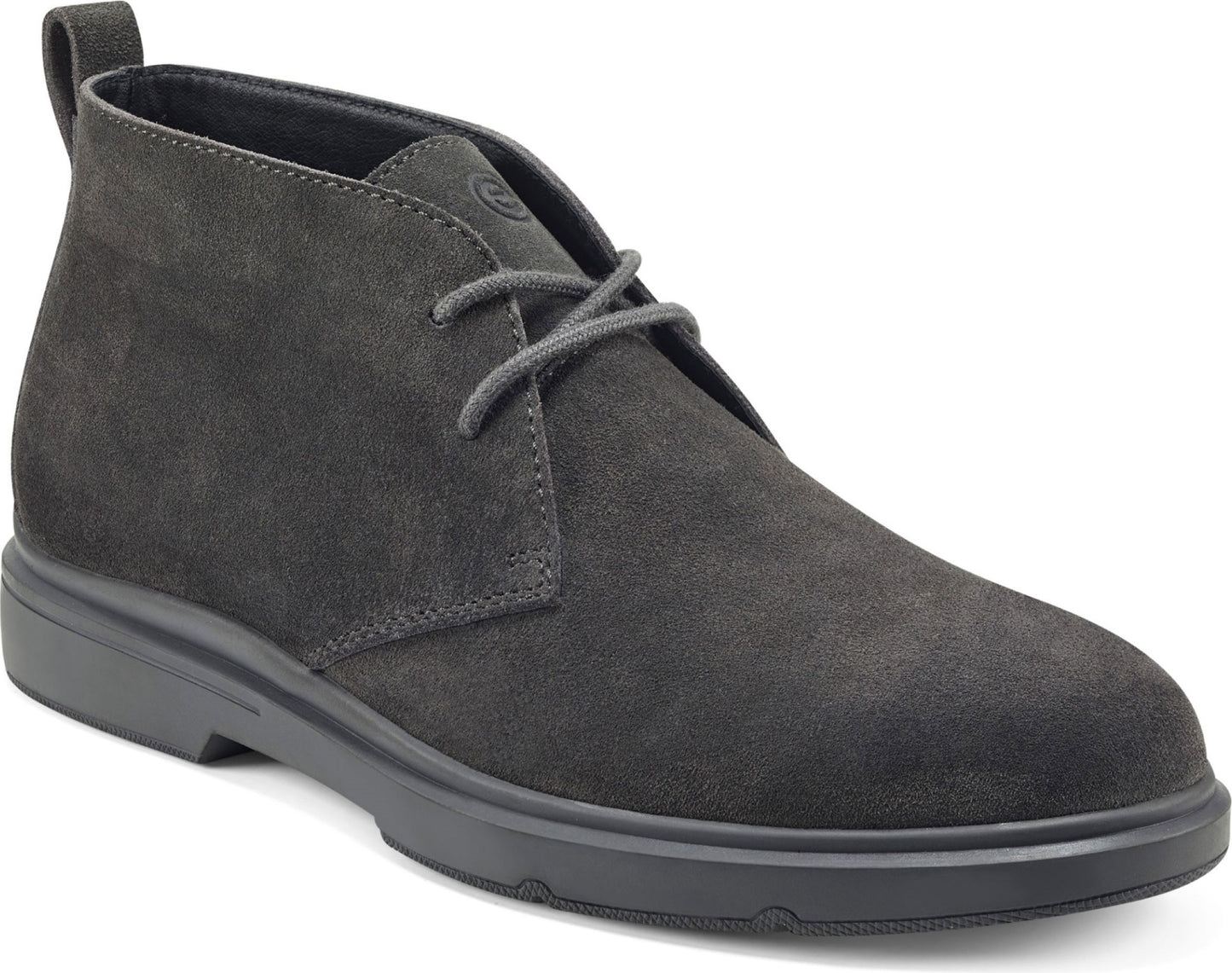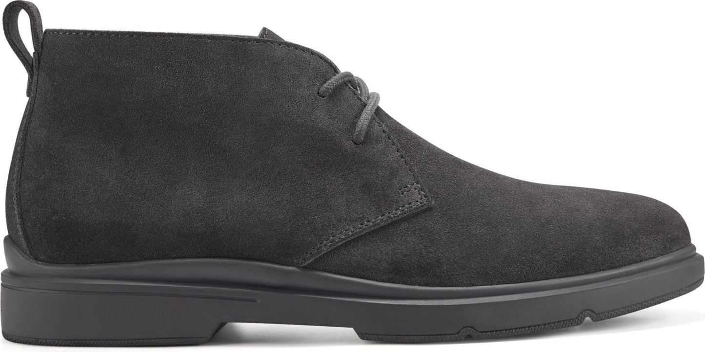 Gray suede Chukka boot with matching laces and sole.
