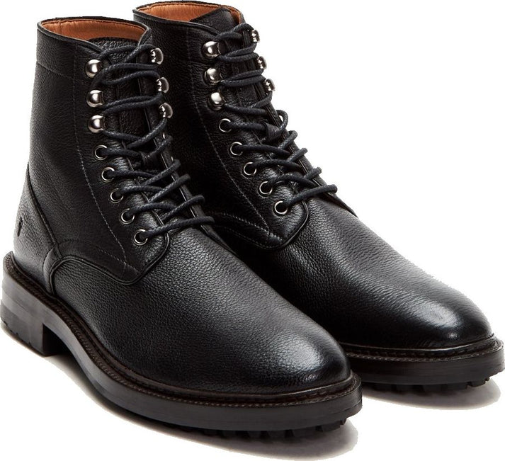 The Greyson Lace Up by FRYE delivers supreme comfort and superb traction with a rubber lug commando sole. Made with ultra-soft, deer skin leathers, which start with a natural crust and are hand-finished with aniline dyes. The result is a rich, pebbled two-tone finish that gives the material depth and artisanal beauty.