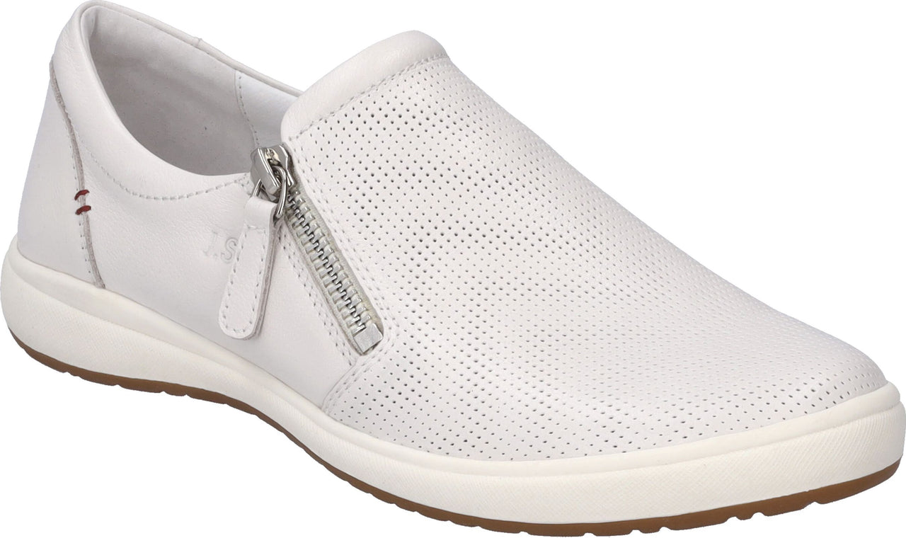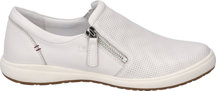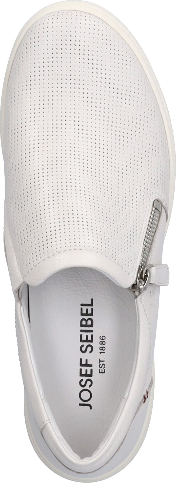 White leather slip-on shoe with decorative zipper.