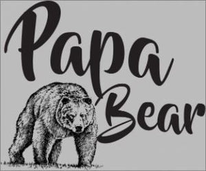 A man wearing a gray T-shirt with the text "Papa Bear" and a bear image on the chest.