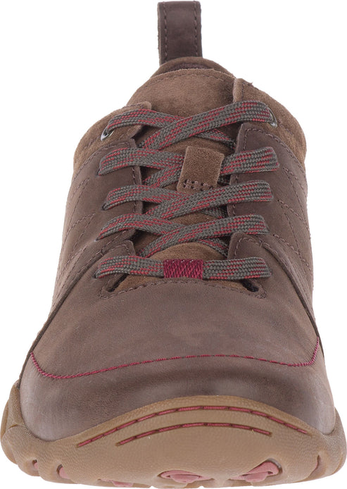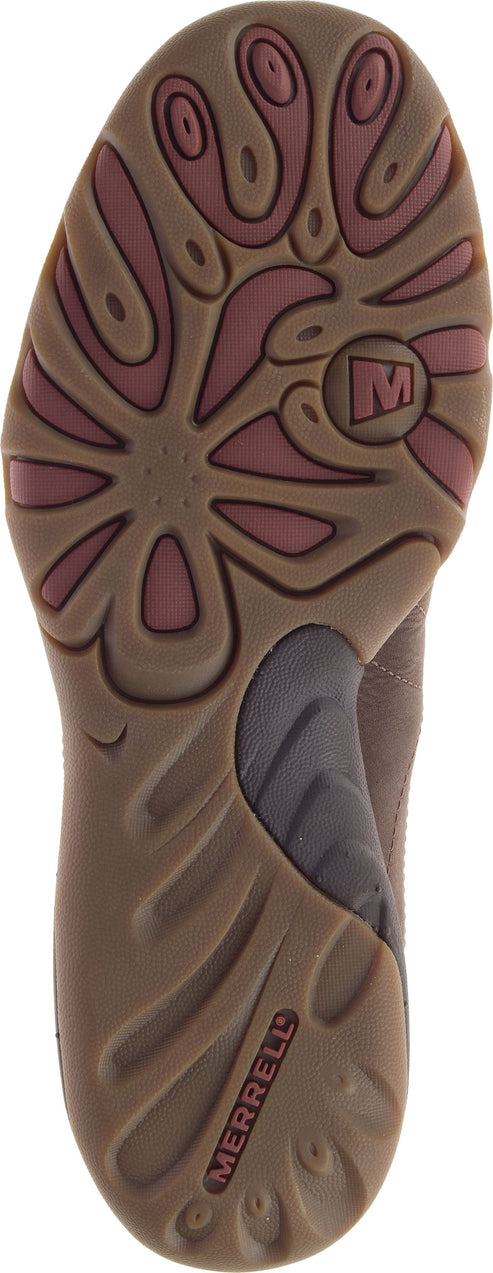 This shoe offers uncompromised comfort in full grain leather for work or play. The Mimosa Lena Leather by MERRELL has a sleek profile and supports your feet with cushioning and trail-inspired grip.