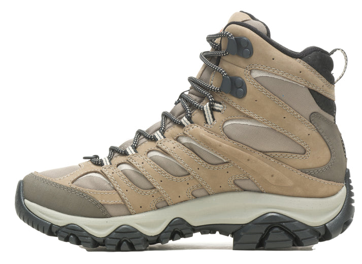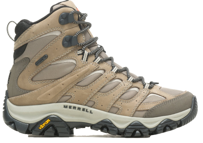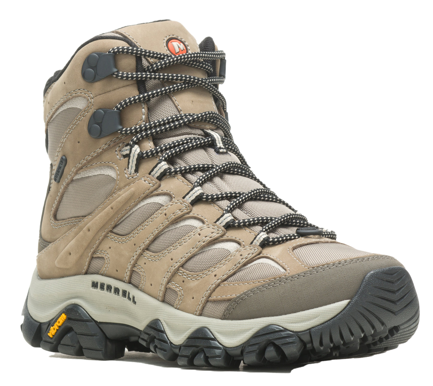 Hiking boot in earth tones, with a high ankle and black and white laces