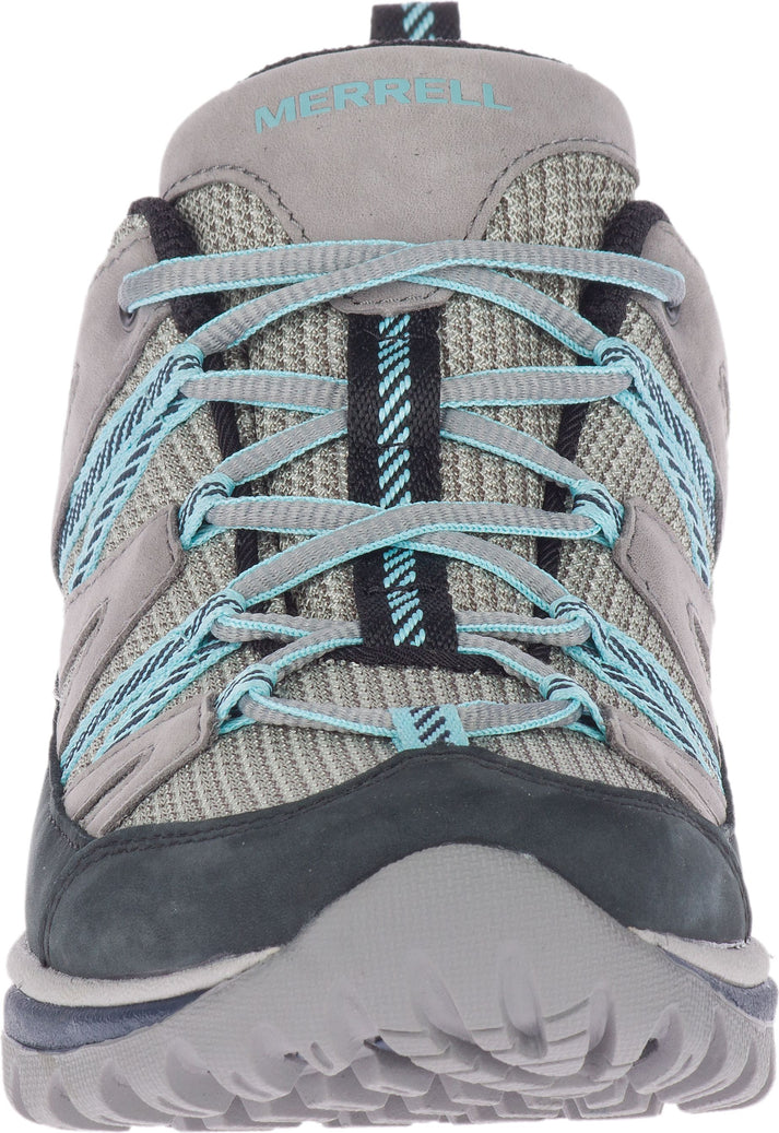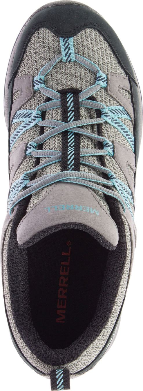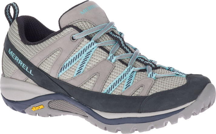 This sporty trail shoe by MERRELL is designed around the unique shape of a woman's foot and features an extremely sticky Vibram sole for traction when it's wet.