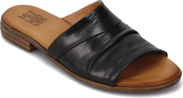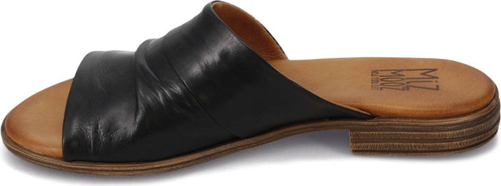 Taking after the some favorite easy slides, the Delilah by MIZ MOOZ has an asymmetrical body with a cushioned footbed- ideal for all day wear! This silhouette is now sitting on a slight heel, elevating this go-to sandal.