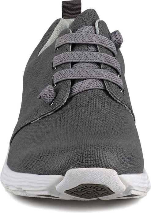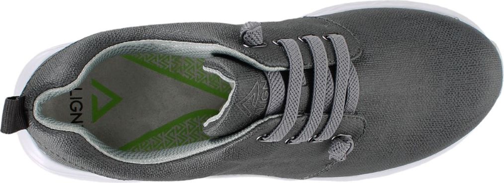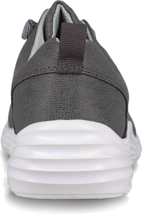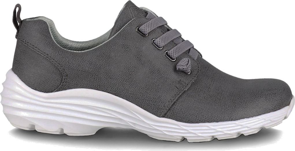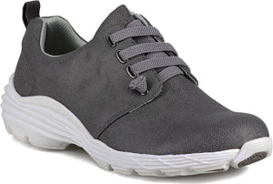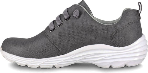 Charcoal-colored women's sneaker with a white sole and lace-up closure.