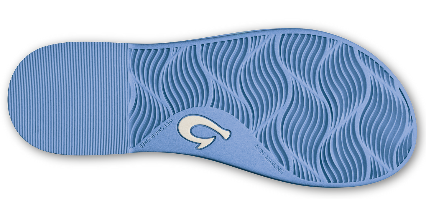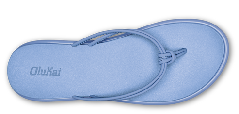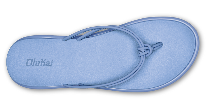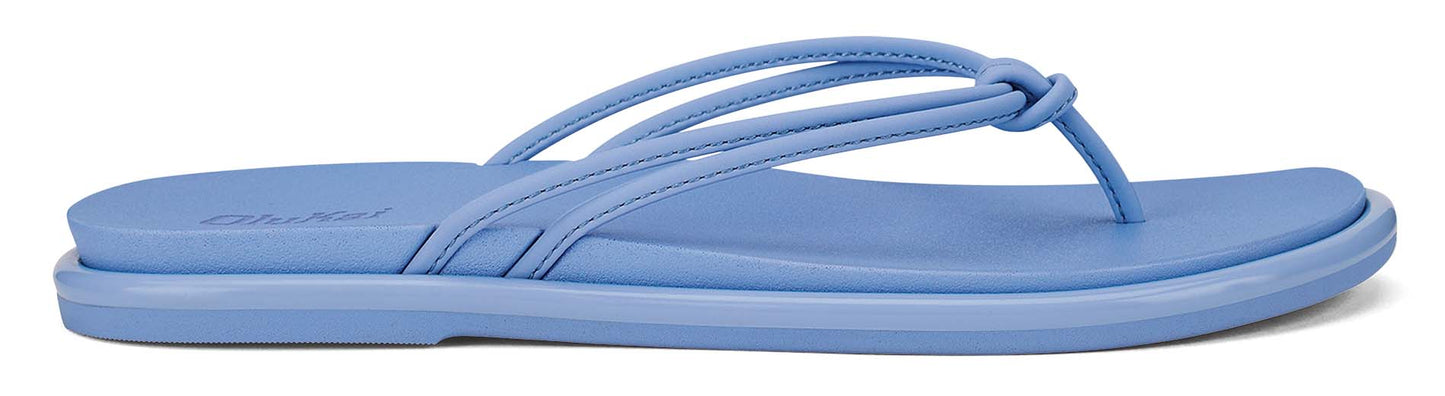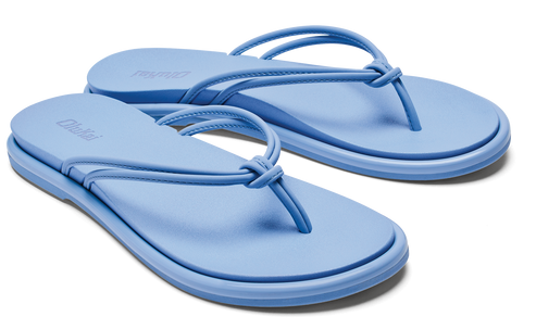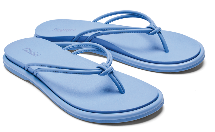Light blue flip-flops with knotted straps.