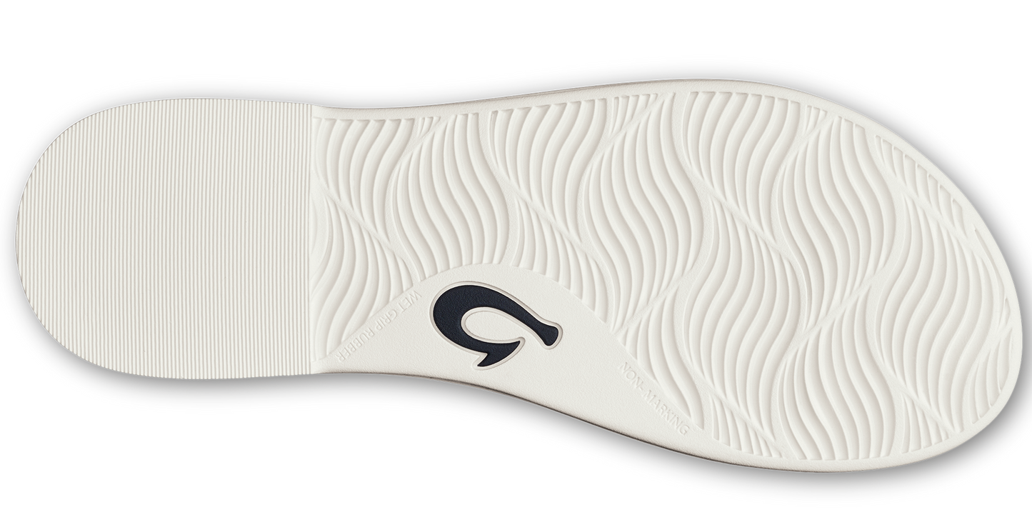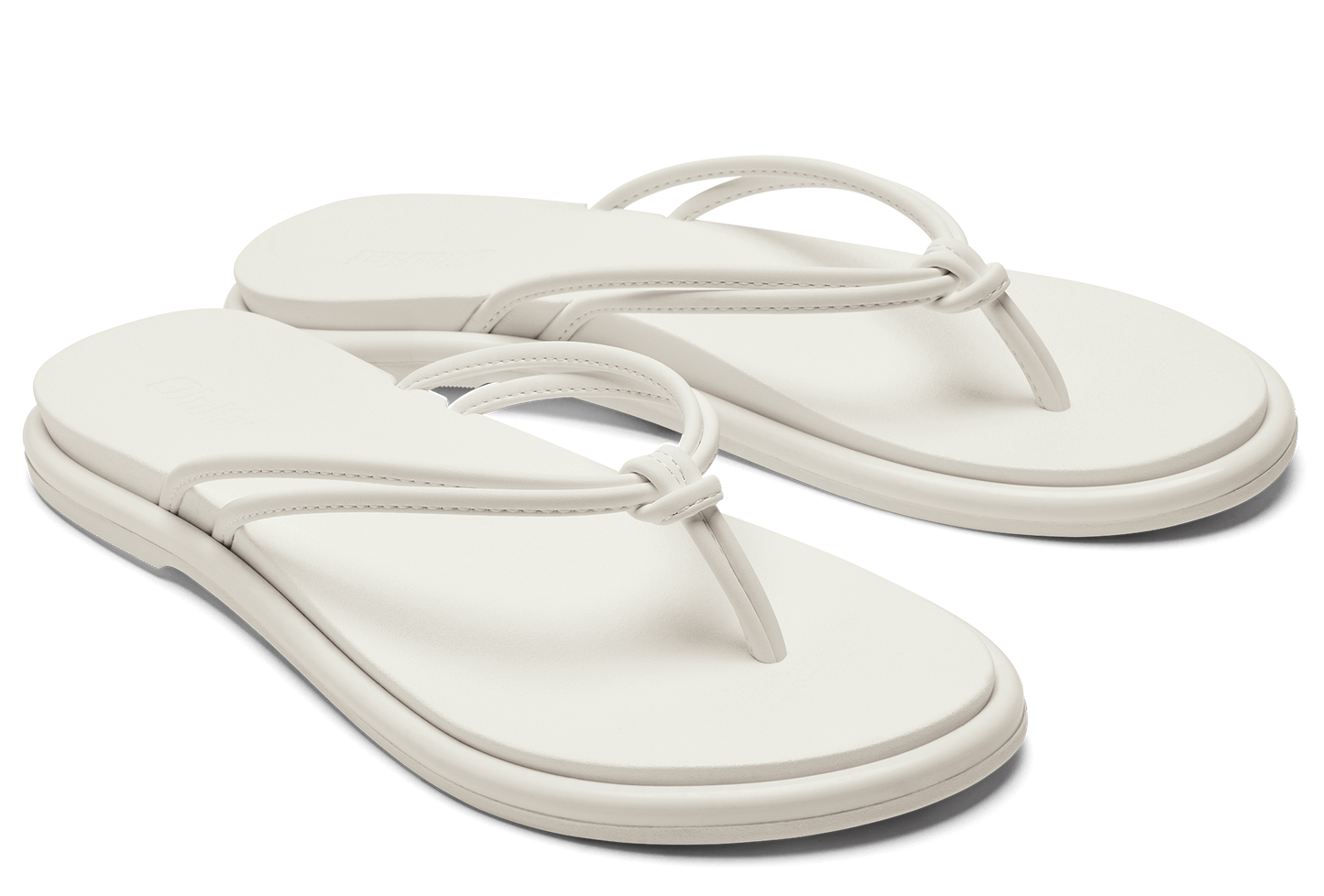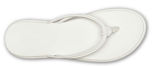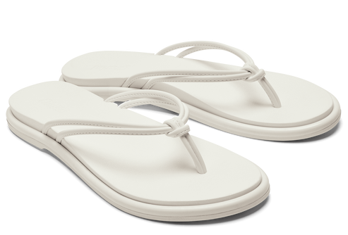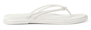 White sandal-style flip-flop with a square toe and multiple thin straps over the top of the foot.