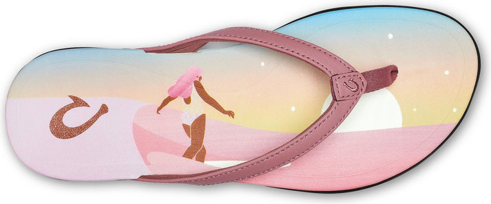 As a tribute to iconic waves in Hawai‘i and the wāhine (women) who surf them, OLUKAI added custom 'Surfer Girl' artwork to their Ho'ōpio Pae. Designed to be slim, beautiful, and inspiring—this breezy beach sandal fills every step with island energy.