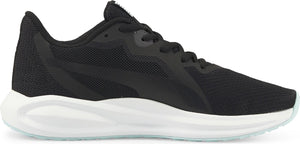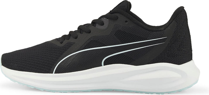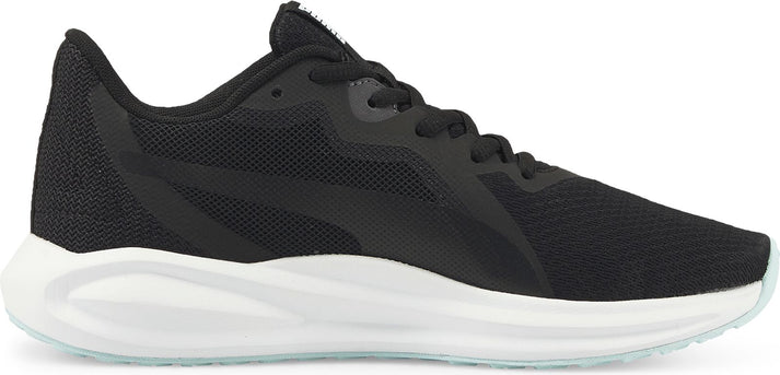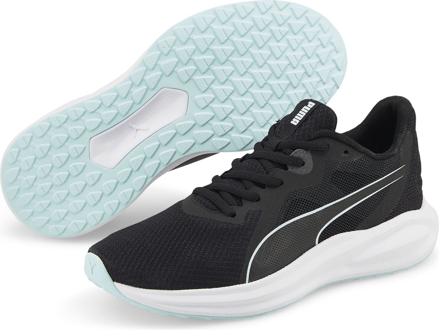Go hard or go home in the power performance Twitch Runner by PUMA. Modelled after PUMA’s celebrated Velocity Nitro, the Twitch Runner boasts clean lines and slick design detail. A bold paint line highlights the cushioned tooling while the mono mesh upper material is breathable and comfortable during both speed and endurance runs. A zoned rubber outsole creates durability and traction clout when you need it, and the midfoot is locked down with internal structural support, which, when combined with the plush SOFTFOAM +, offers a high-comfort ride.