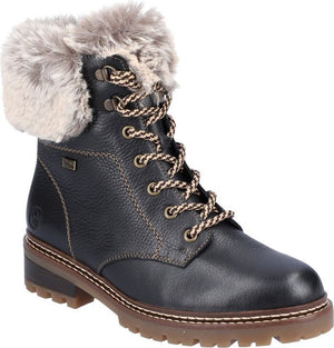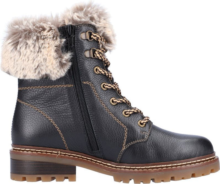 These classic lace-up boots by REMONTE are made up of a smooth leather and have a cuddly-soft lining. With water-repellent properties your feet will be warm and dry all day.