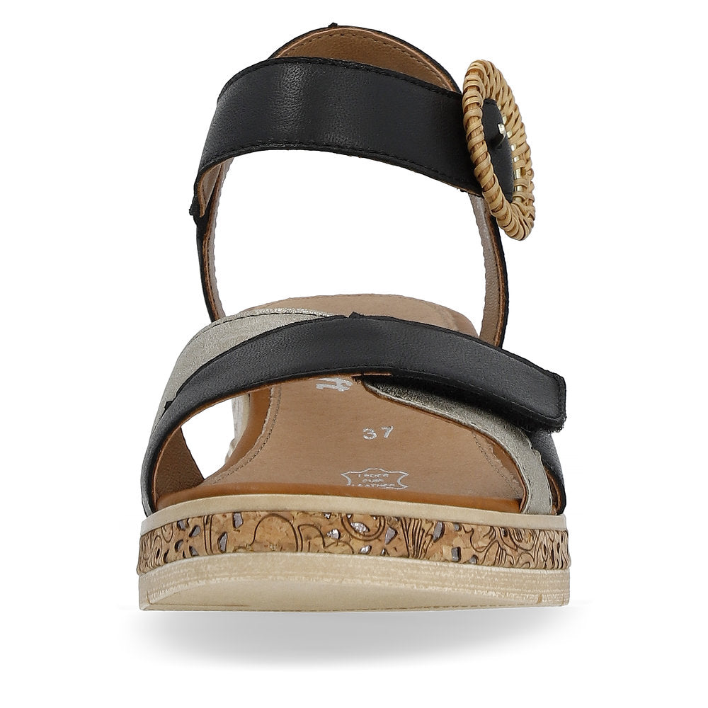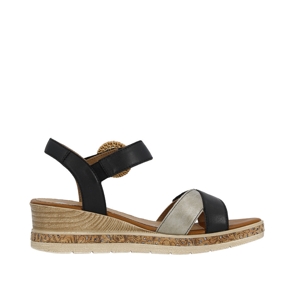 Stylish and extremely comfortable! With these night black remonte wedge sandals made of smooth leather, coolest style and maximum comfort are guaranteed at every step of the way. Thanks to crossed straps and a hook and loop fastener, the shoe adapts individually to the foot. The heel strap provides additional support. The light and cushioning sole with wedge heel offers lasting comfort - even on long days. In addition, the soft cover sole provides an extra portion of comfort. For those who prefer something larger: the wedge sandals are available up to shoe size 45. The leather and microvelour lining ensures a good foot climate. More comfort is not possible!