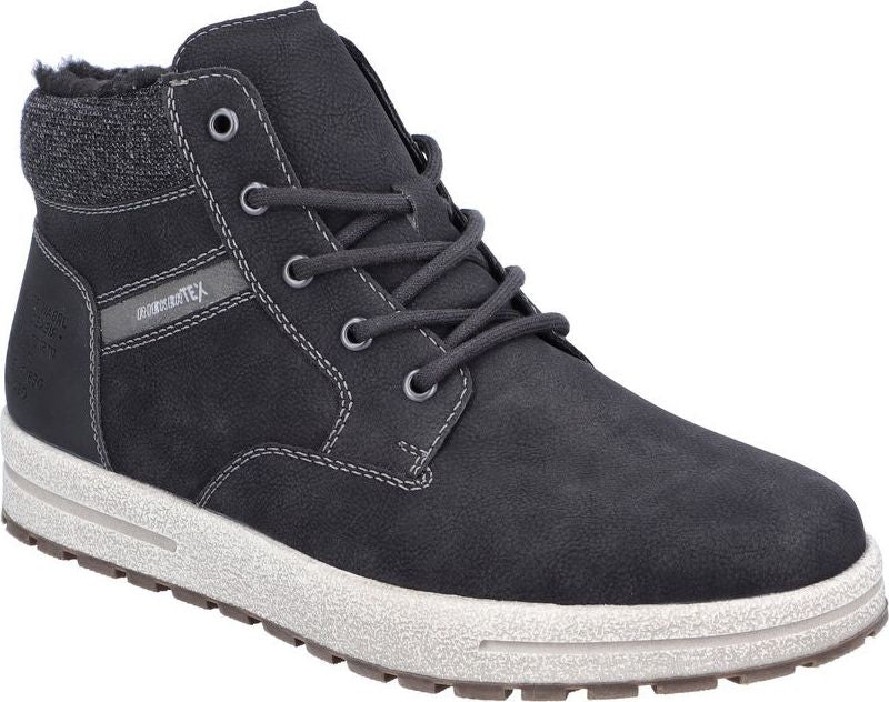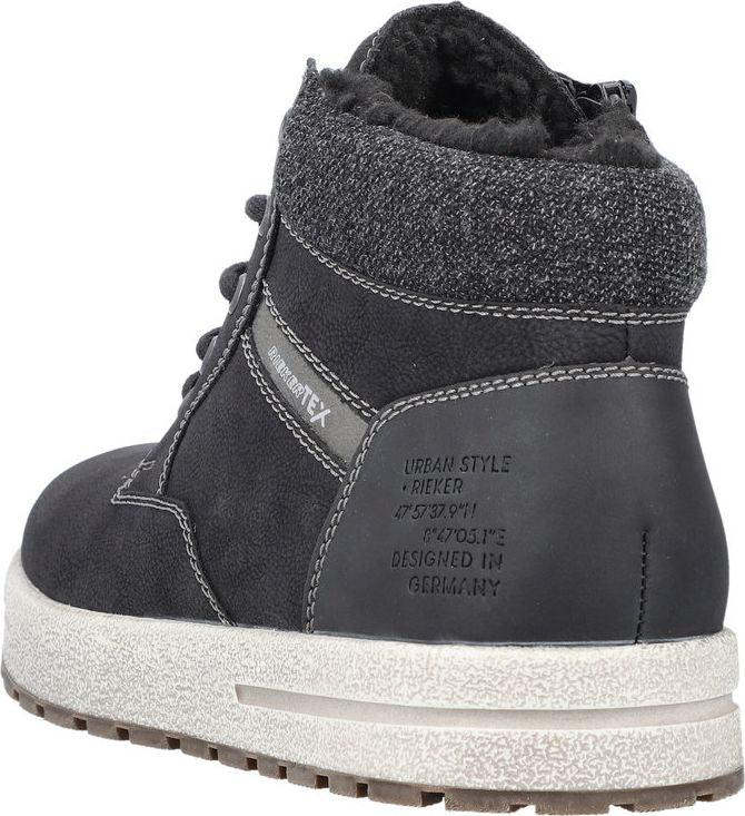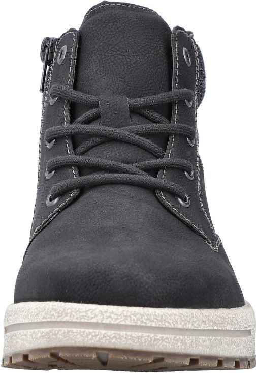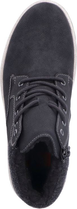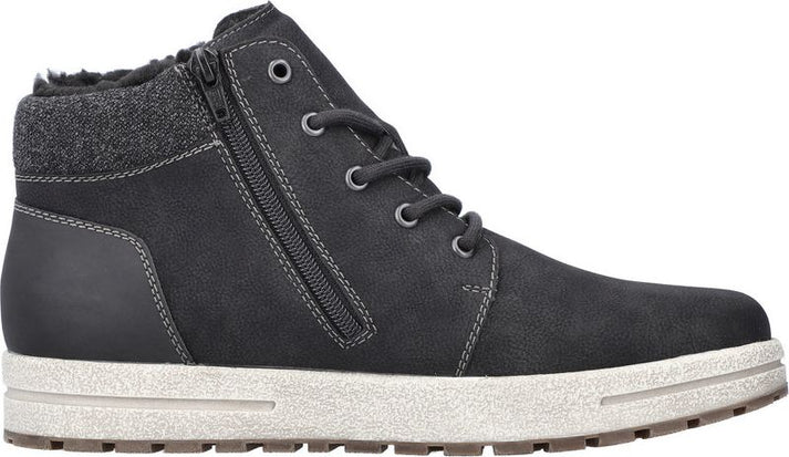 Stay warm and stylish this winter season with these Black Ankle Boots from Rieker! Made with high-quality imitation leather, these lace-up ankle boots are the perfect addition to your city wardrobe. The cozy warm lining with a membrane will protect your feet from the cold, while the sporty yet flat sole ensures a smooth and comfortable step. Getting in and out of these boots is a breeze with the practical zipper, and the laces allow for a perfect fit that stays put.