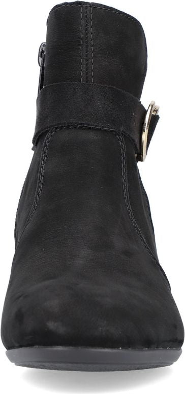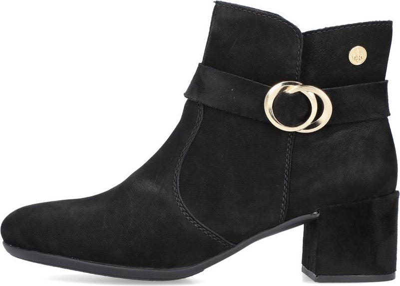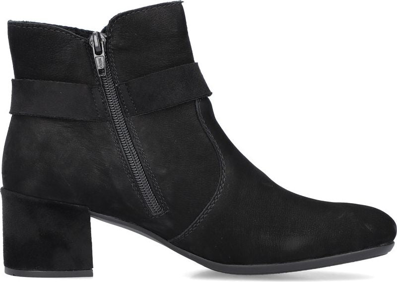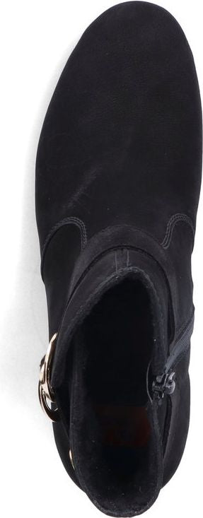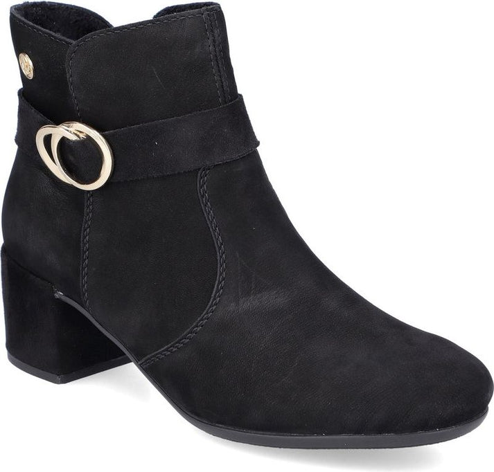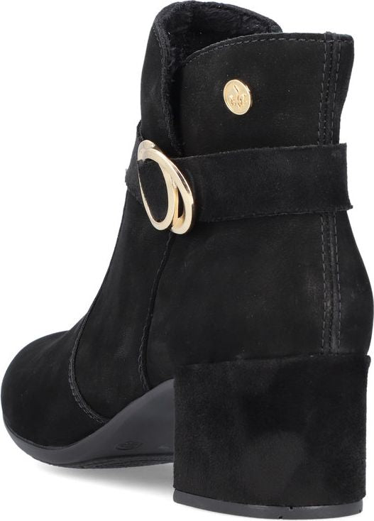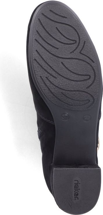 Step into style and comfort with the Black Fur Lined W Heel from Rieker. These beautiful shoes are designed with a timeless appeal, featuring exquisite stitching that perfectly complements the color of the shoes. With a functional zipper on the side and a stylish strap with a distinctive buckle, these shoes are not only fashionable but also practical.